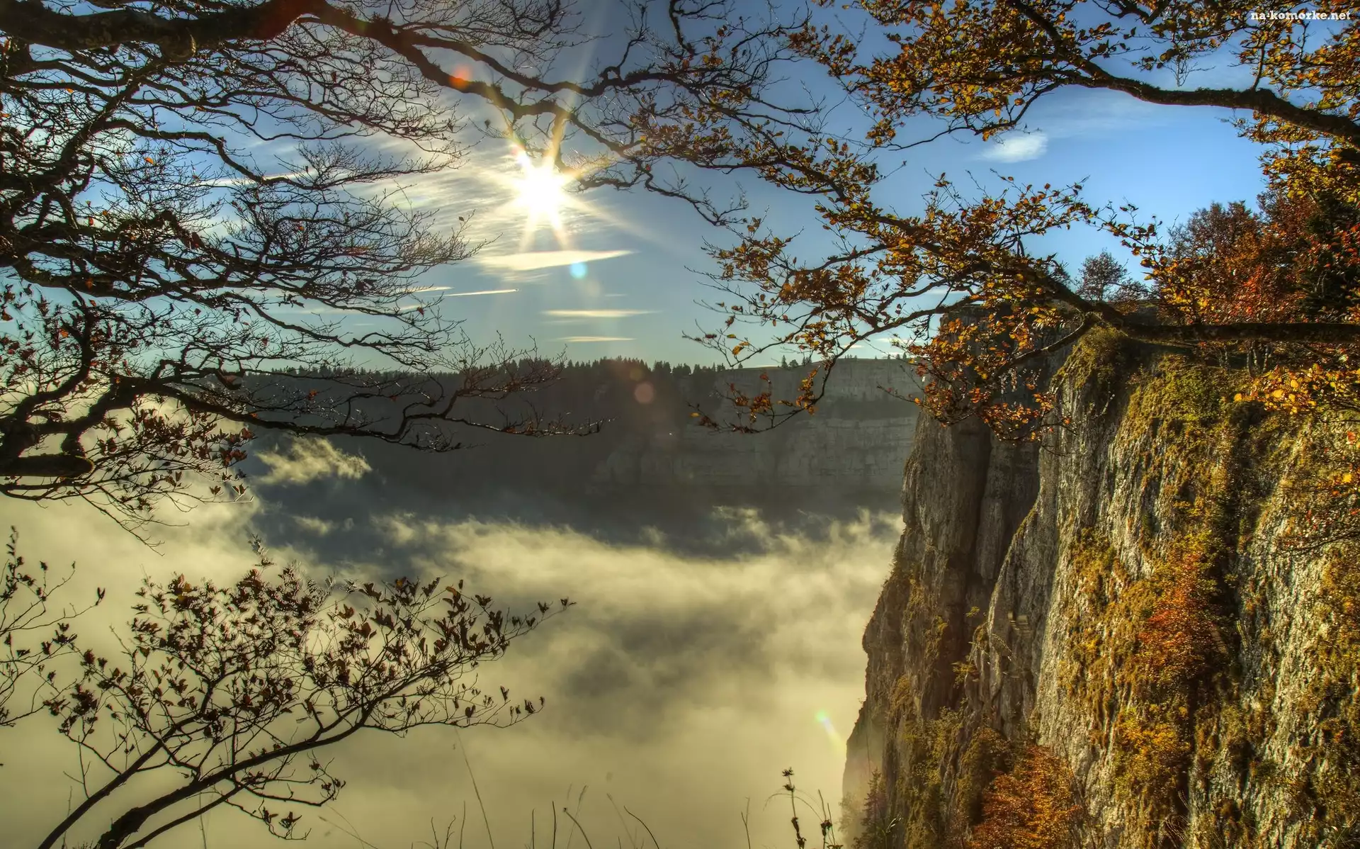 Słońca, Skała, Las, Mgła, Promienie na Komórkę