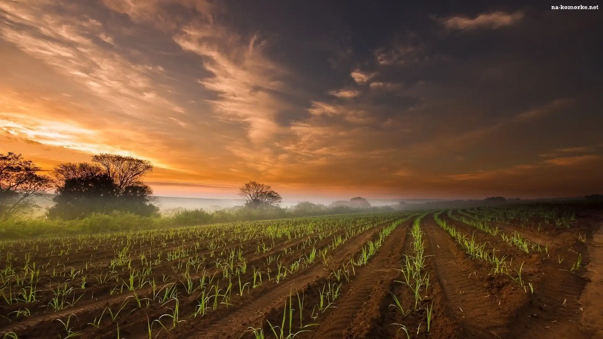 Słońca, Pole, Uprawne, Mgła, Wschód na Komórkę