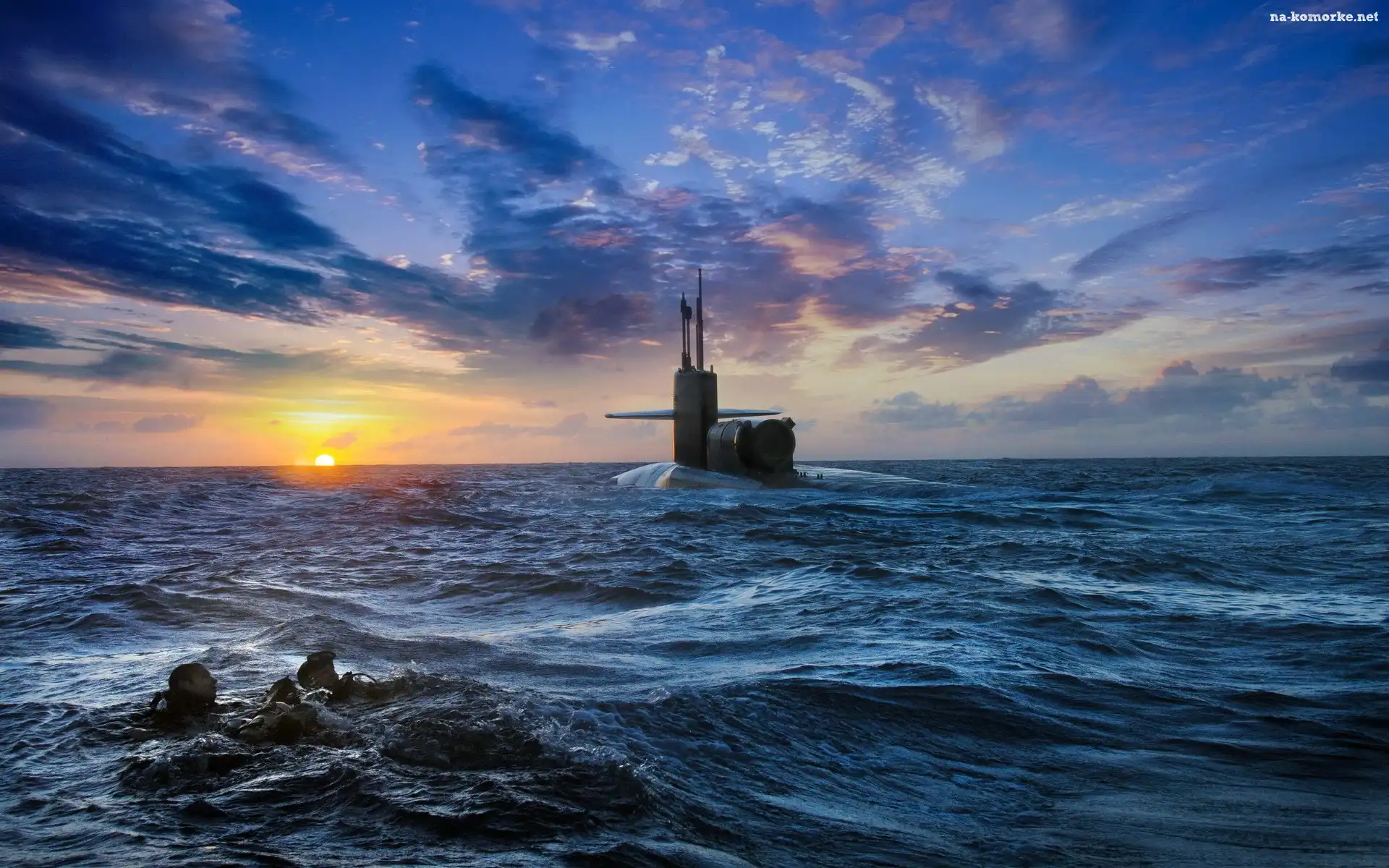 Słońca, Statek, Podwodny, Morze, Zachód na Komórkę