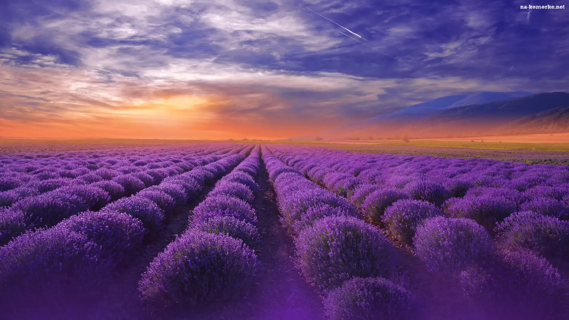 Zachód słońca, Niebo, Pole, Lawenda na Komórkę