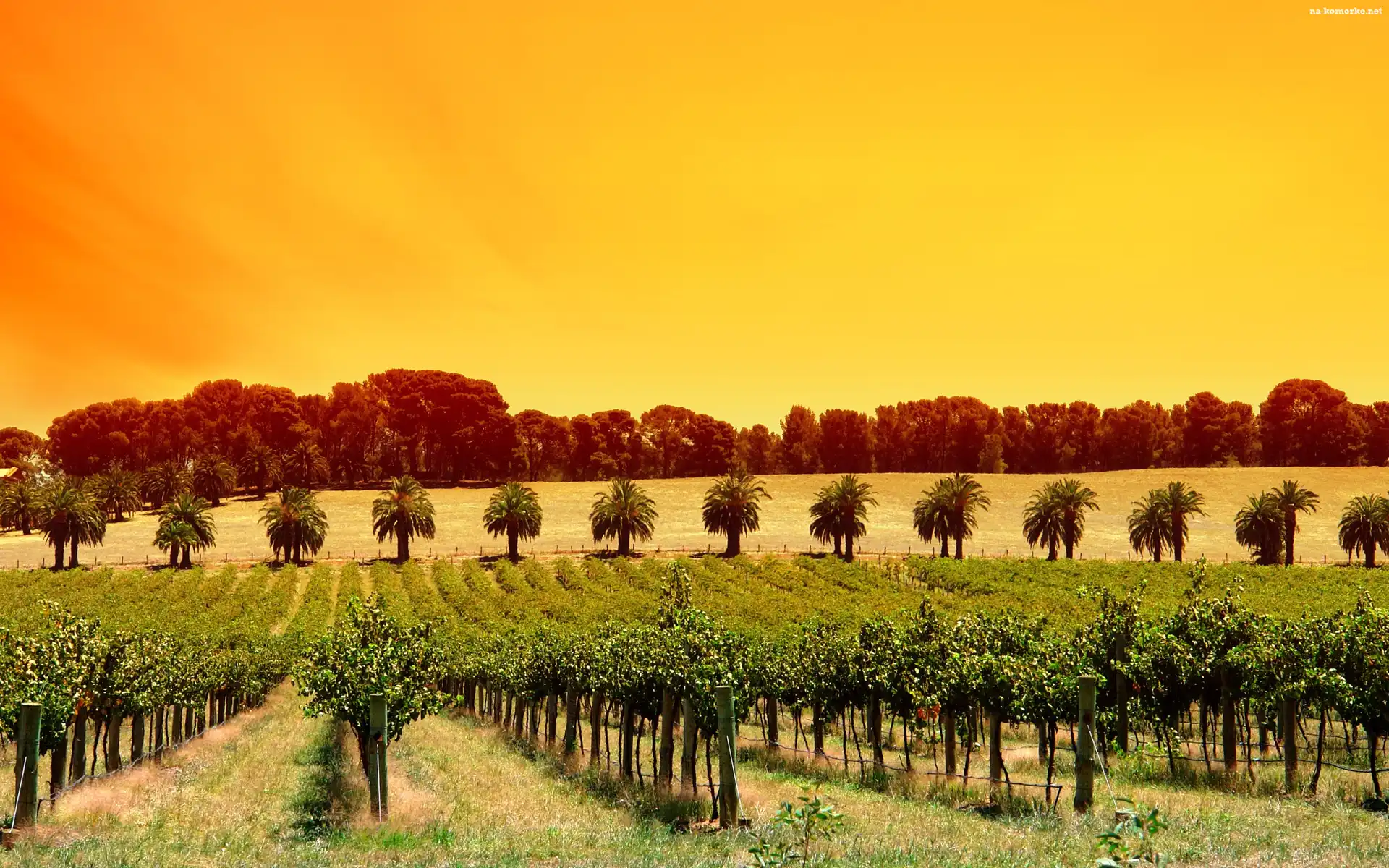 Słońca, Winnica, Drzewka, Owocowe, Zachód na Komórkę