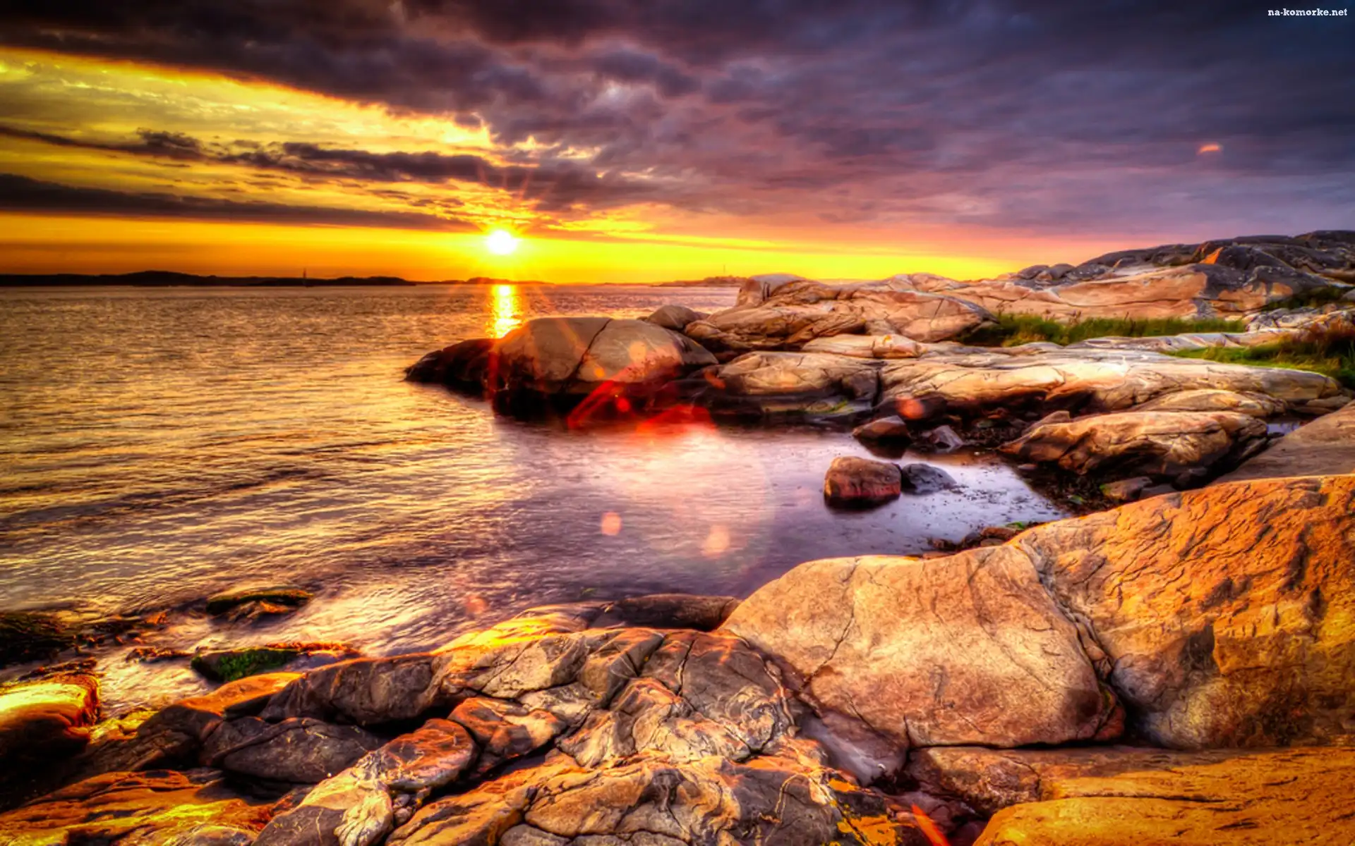 Słońca, Morze, Skały, Piękny, Zachód na Komórkę