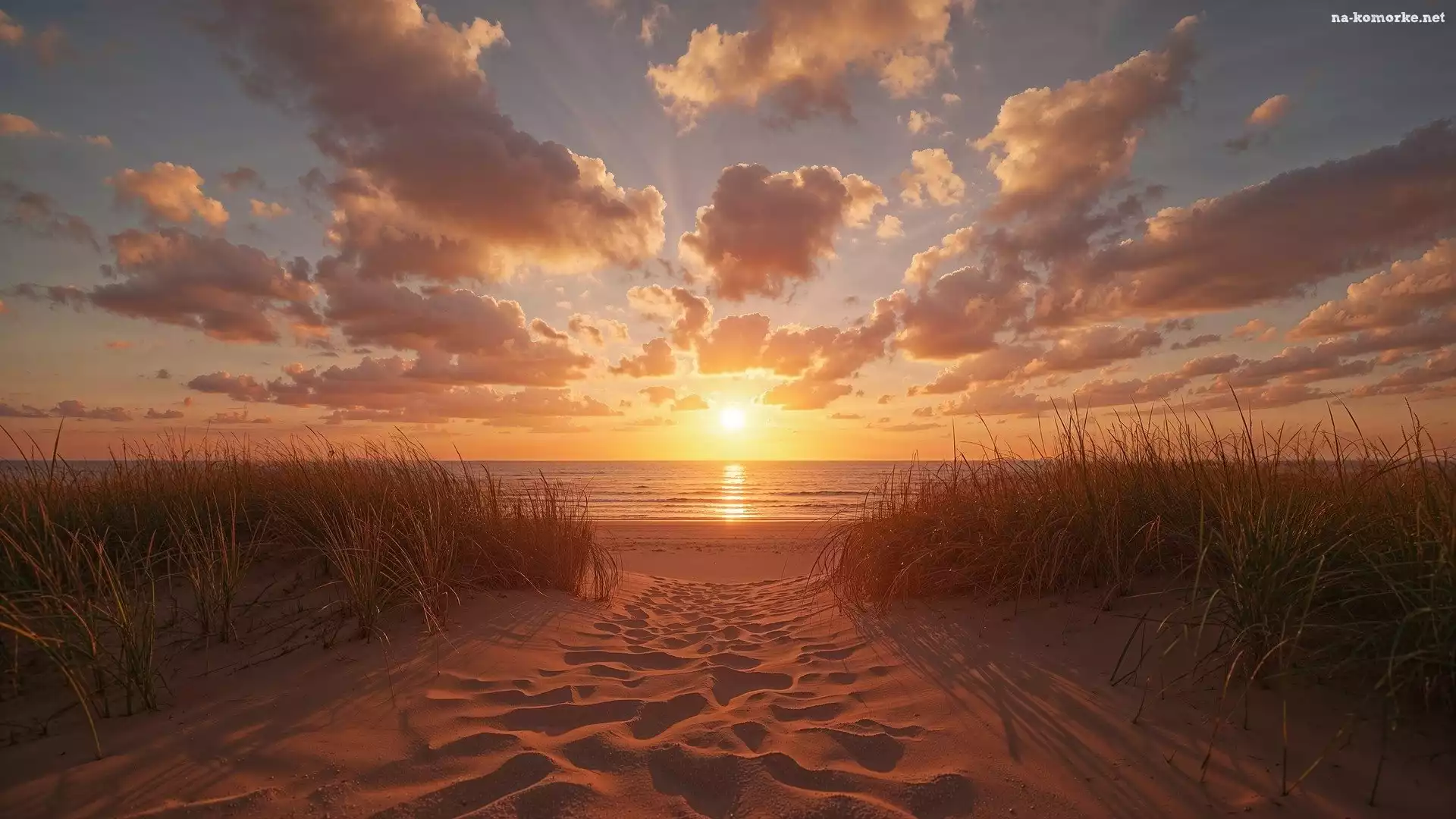 Trawa, Plaża, Plaża, Niebo, Niebo, Chmury, Zachód Słońca na Komórkę