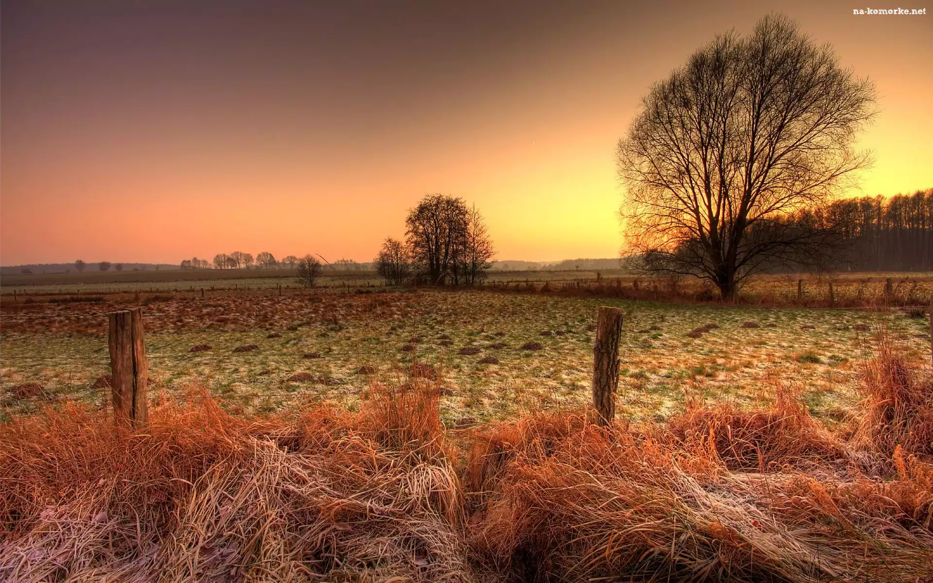 Pola, Słońca, Jesień, Łąki, Lasy, Szron, Zachód na Komórkę