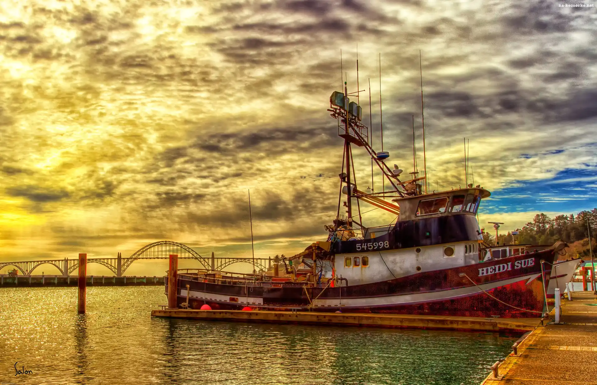 Słońca, Kuter, Rybacki, Port, Zachód na Komórkę