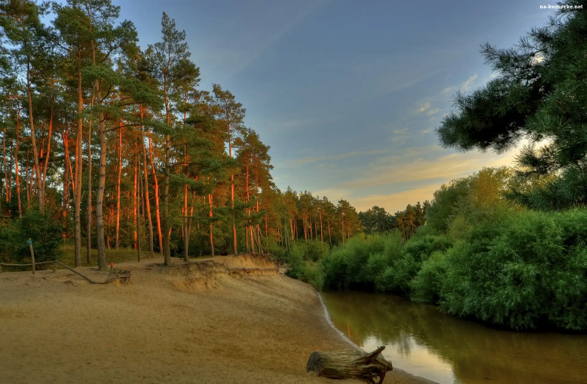 Słońca, Lato, Las, Rzeka, Zachód na Komórkę