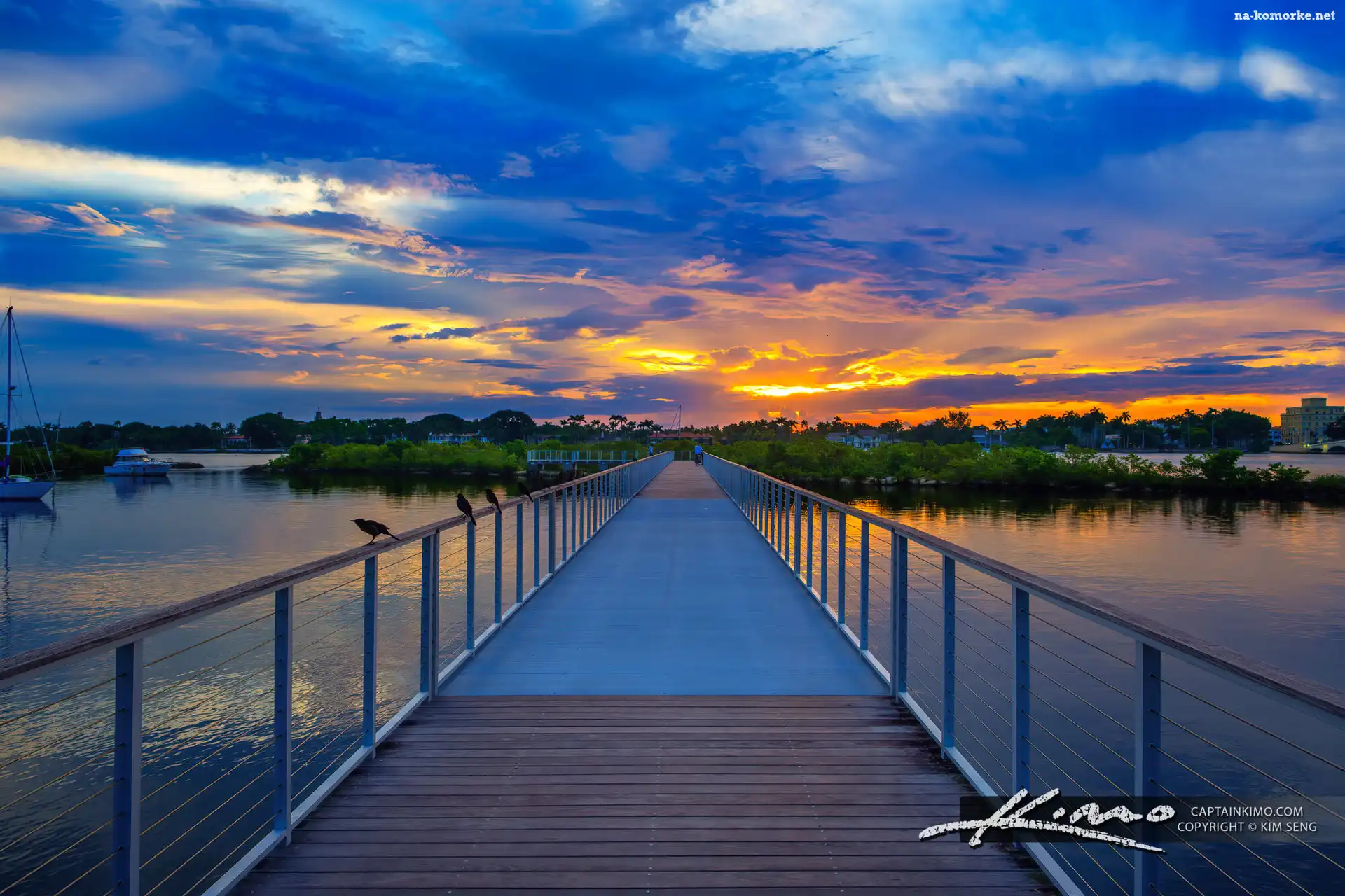 Żaglówki, Ptaki, Wschód słońca, Most, West Palm Beach, Floryda, Stany Zjednoczone, Domy, Jezioro na Komórkę |