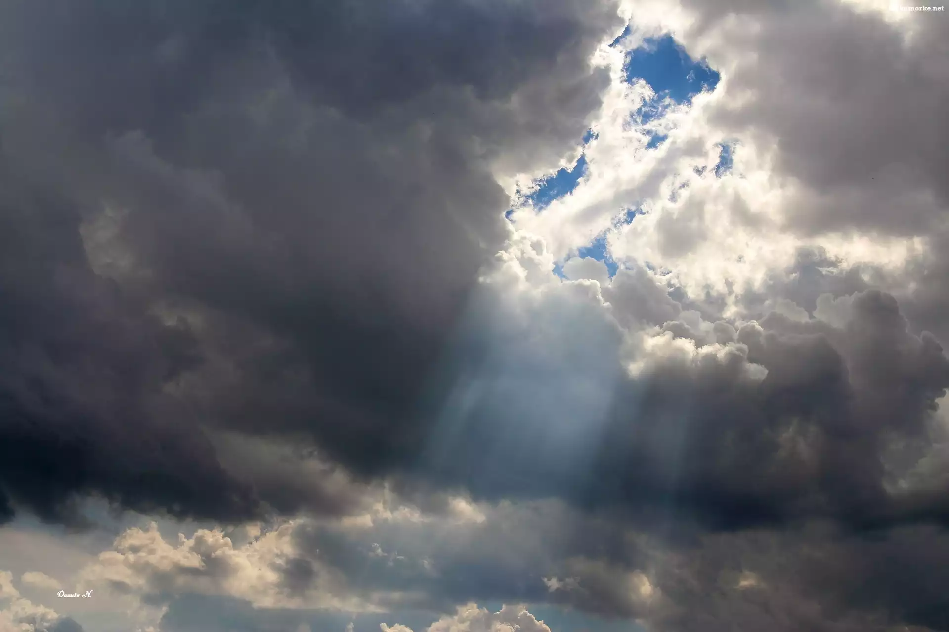 Słońca, Niebo, Chmury, Przebijające Światło, Promienie na Komórkę