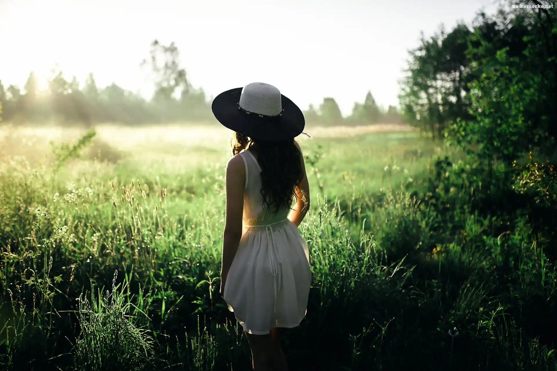 Słońca, Kapelusz, Kobieta, Las, Wschód, Łąka na Komórkę