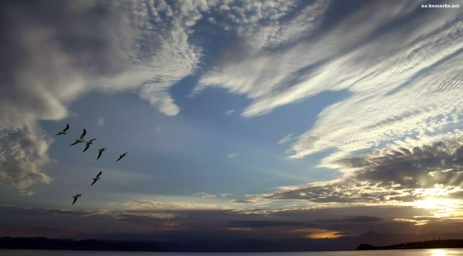 Słońca, Chmury, Niebo, Ptaków, Wschód, Klucz na Komórkę