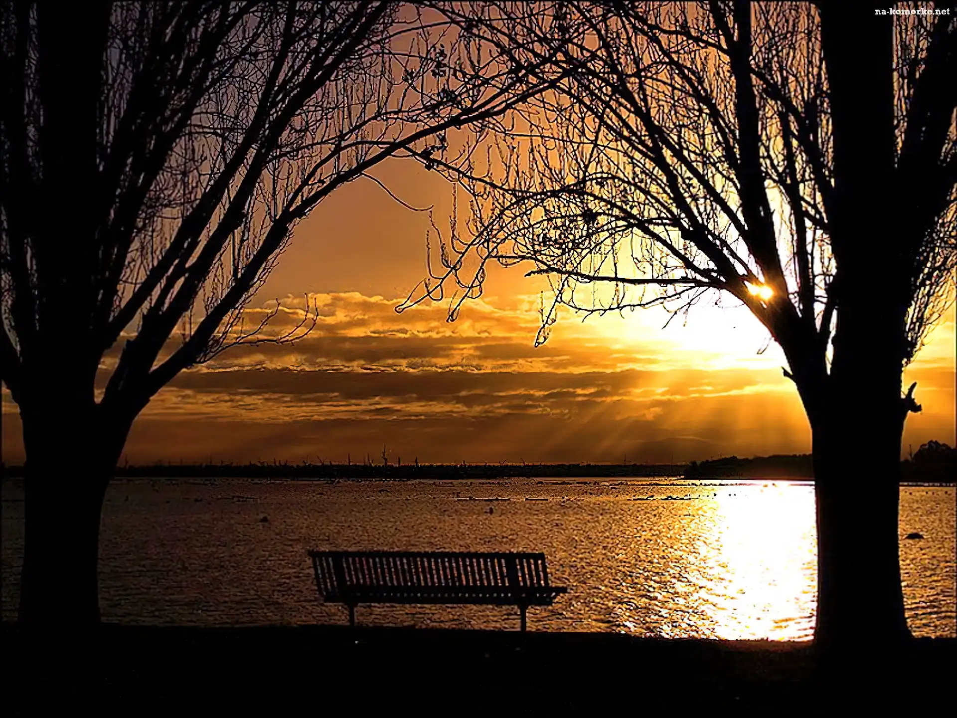 Zachód, Słońca, Ławka na Komórkę