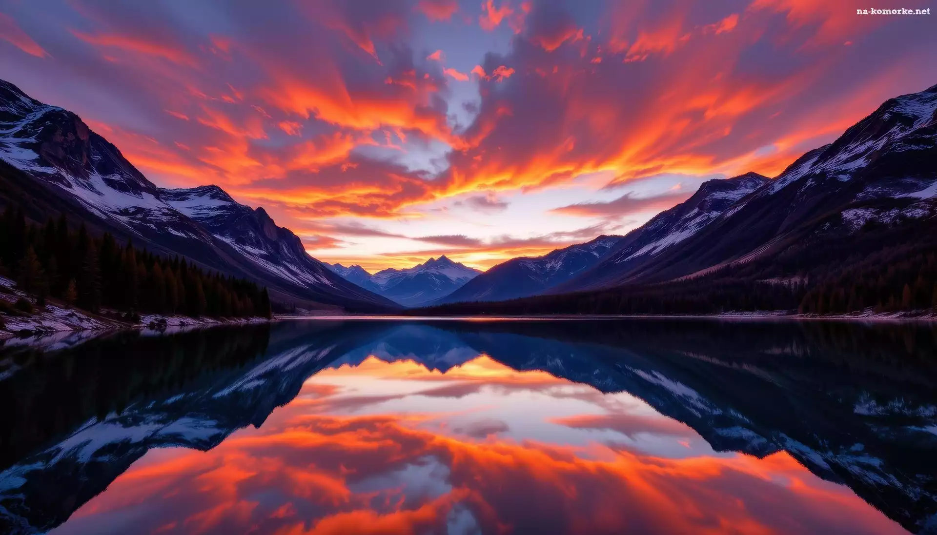 Jezioro, Chmury, Zachód słońca, Góry, Grafika AI na Komórkę