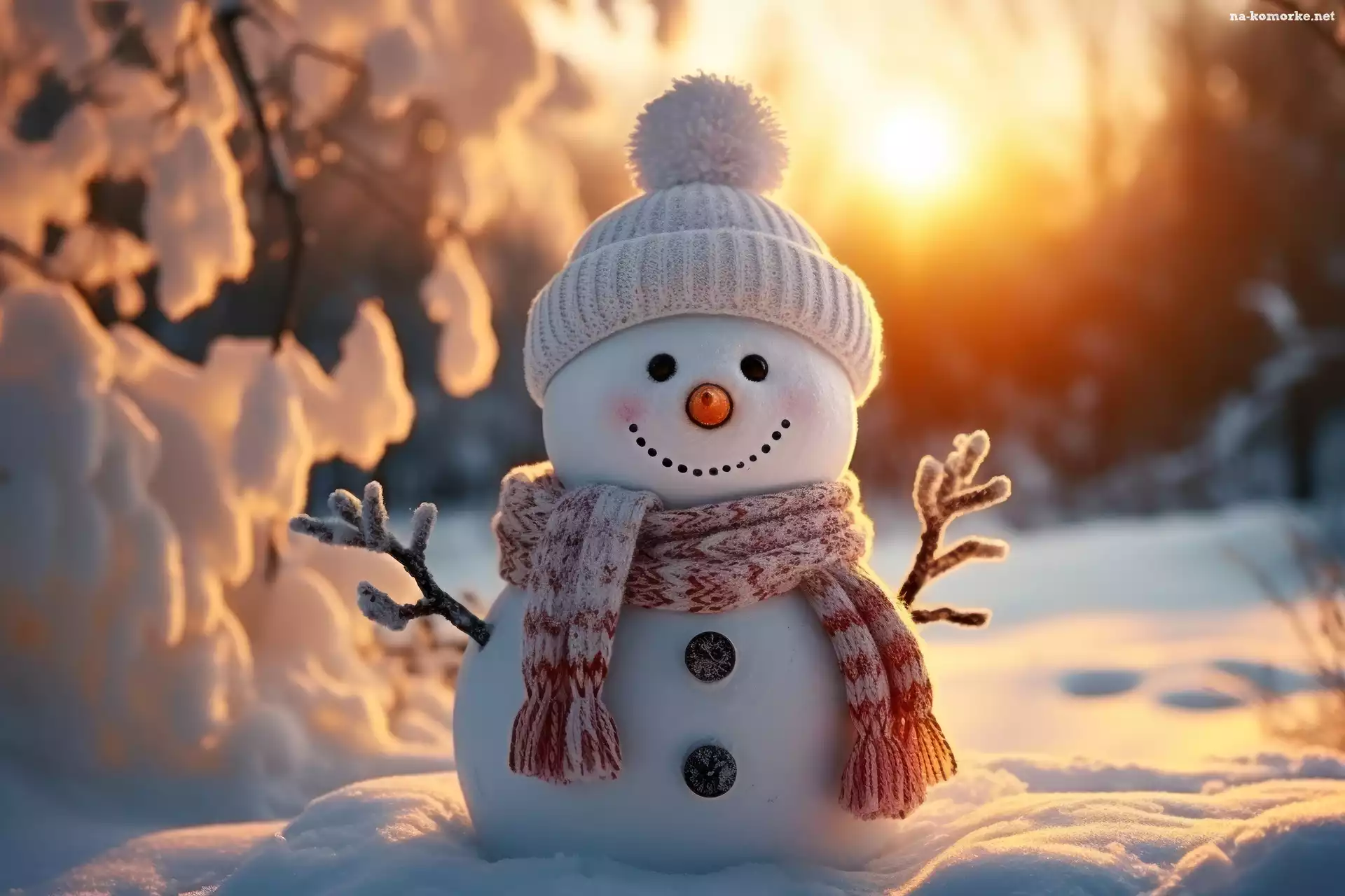 Bałwanek, Czapka, Zachód słońca, Szalik, Grafika AI na Komórkę