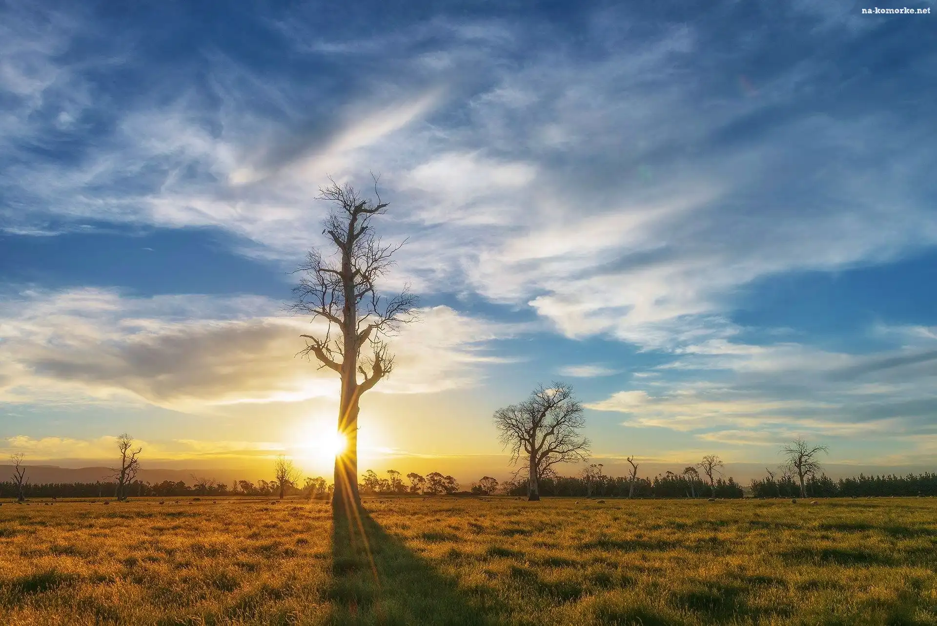 Zachód, Słońca, Drzewa na Komórkę