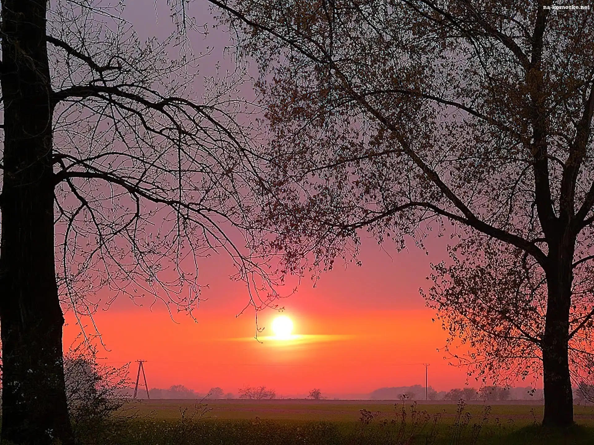Zachód, Słońca, Drzewa na Komórkę