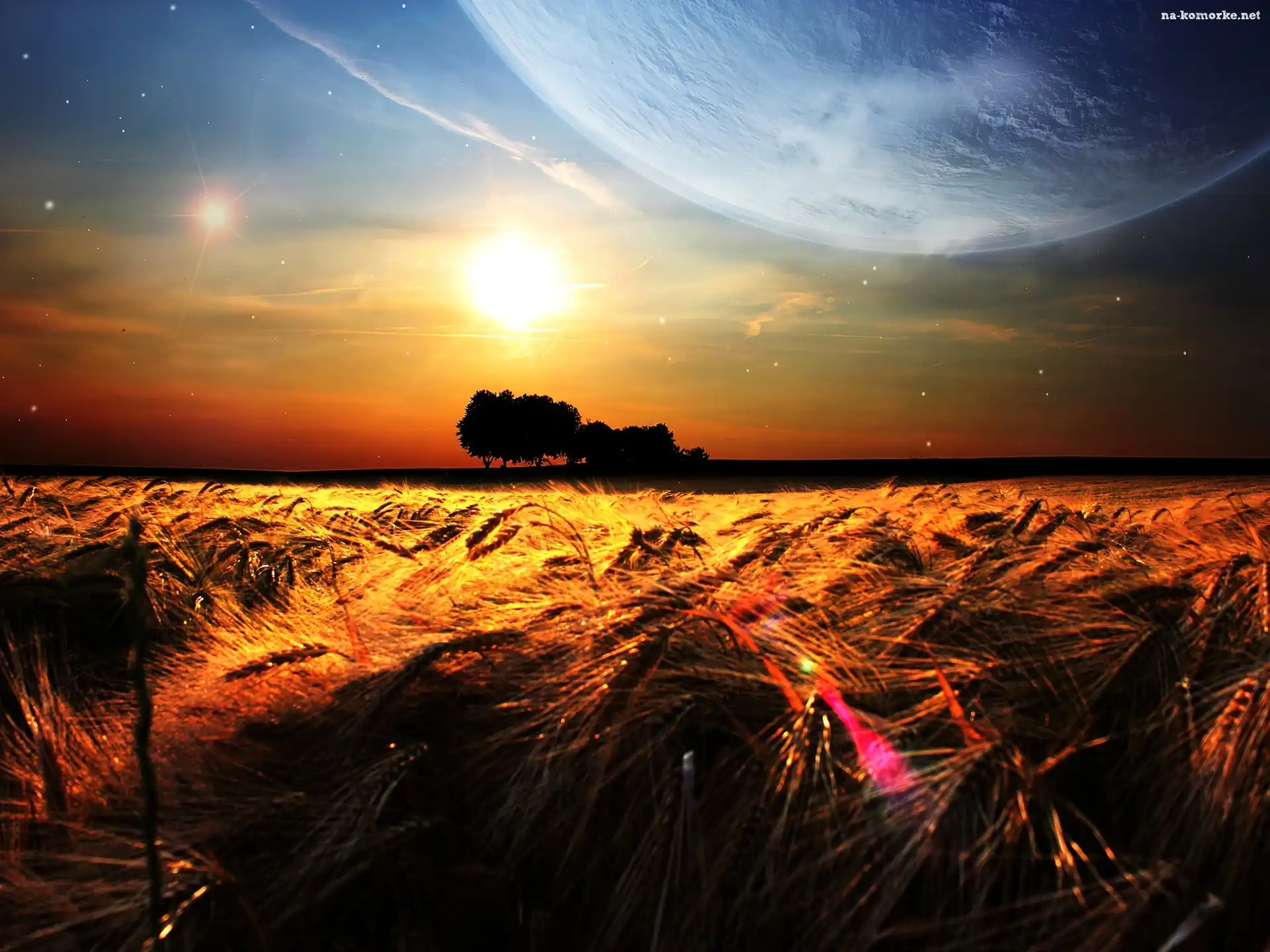 Zachód, Słońca, Zboże na Komórkę