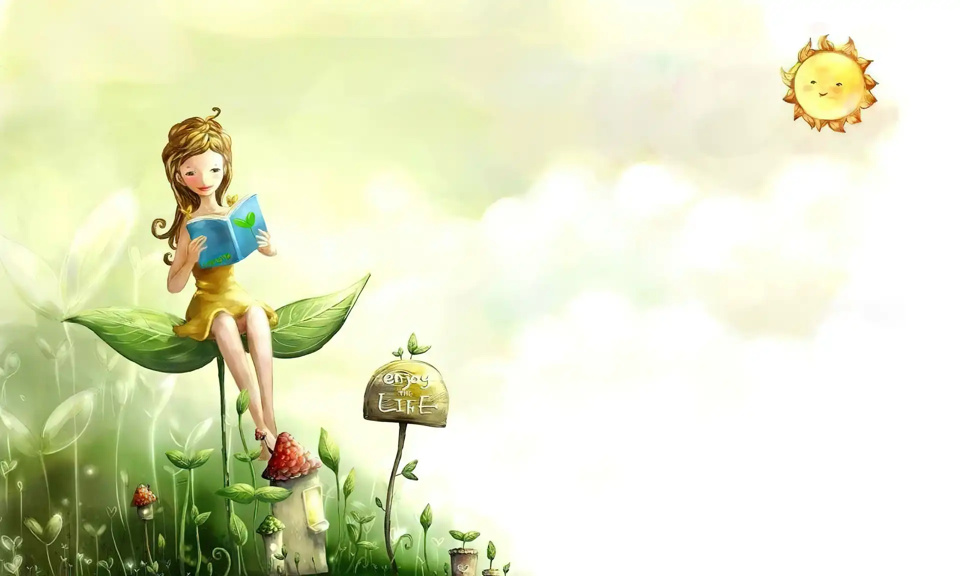 Słońce, Zielone, Roślinki, Dziewczynka, Książka na Komórkę