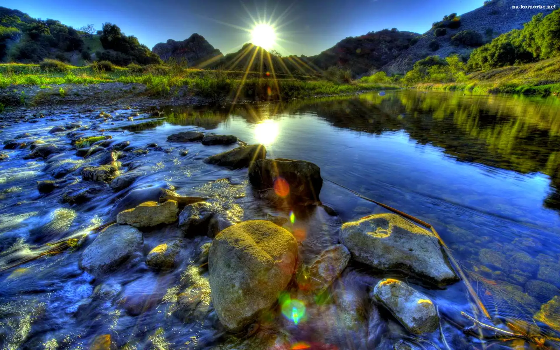 Słońce, Kamienie, Jezioro, Góry na Komórkę