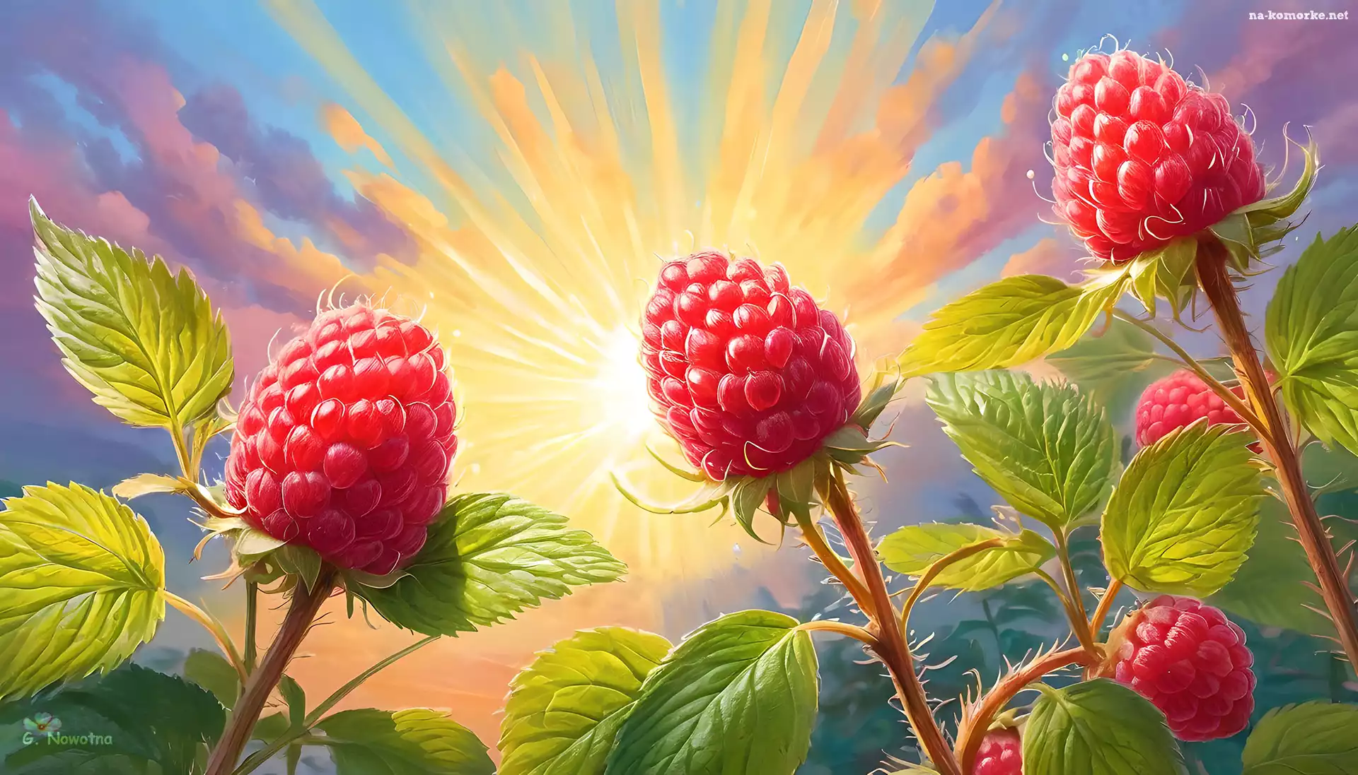 Maliny, Słońce, Owoce, Liście, Grafika na Komórkę