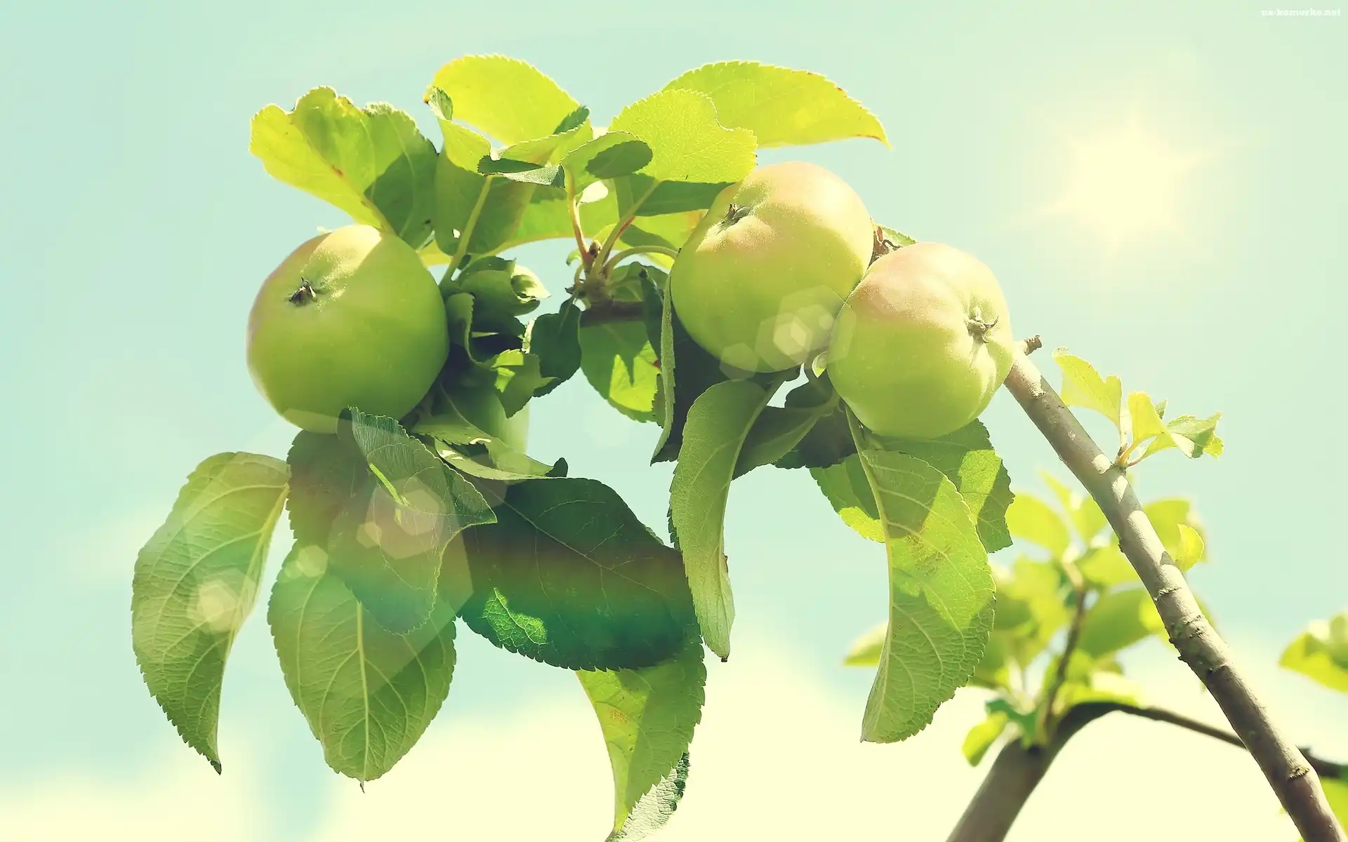 Słońce, Jabłka, Gałąź, Zielone, Listki na Komórkę