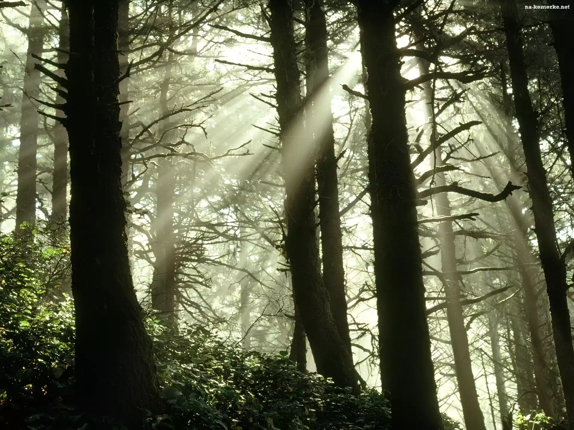 Słoneczne, Wysokie, Drzewa, Las, Promienie na Komórkę
