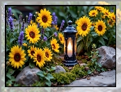 Kwiaty, Lampion, Kamienie, Słoneczniki ozdobne, AI na Komórkę