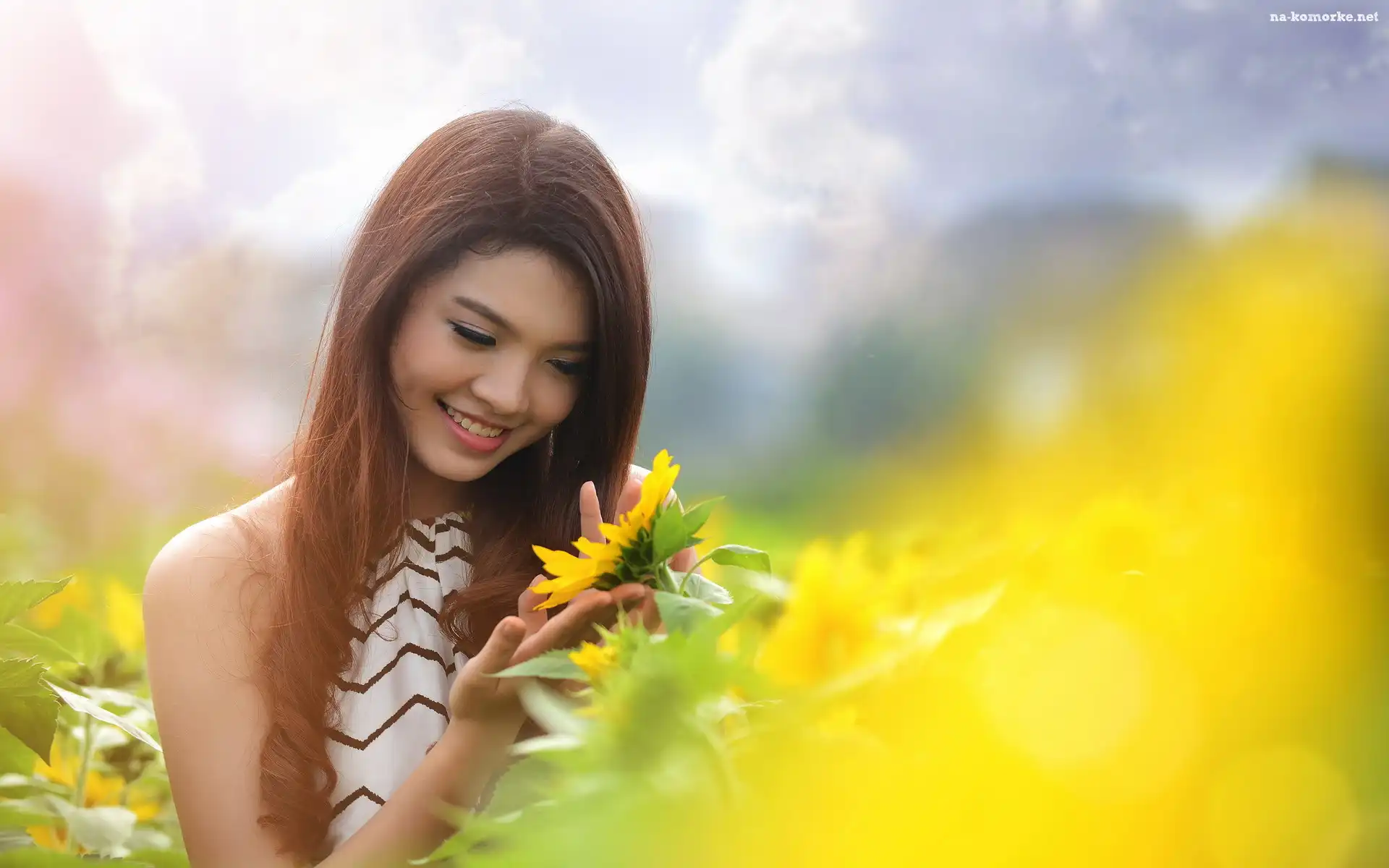Dziewczyna, Słoneczniki, Rozmycie na Komórkę