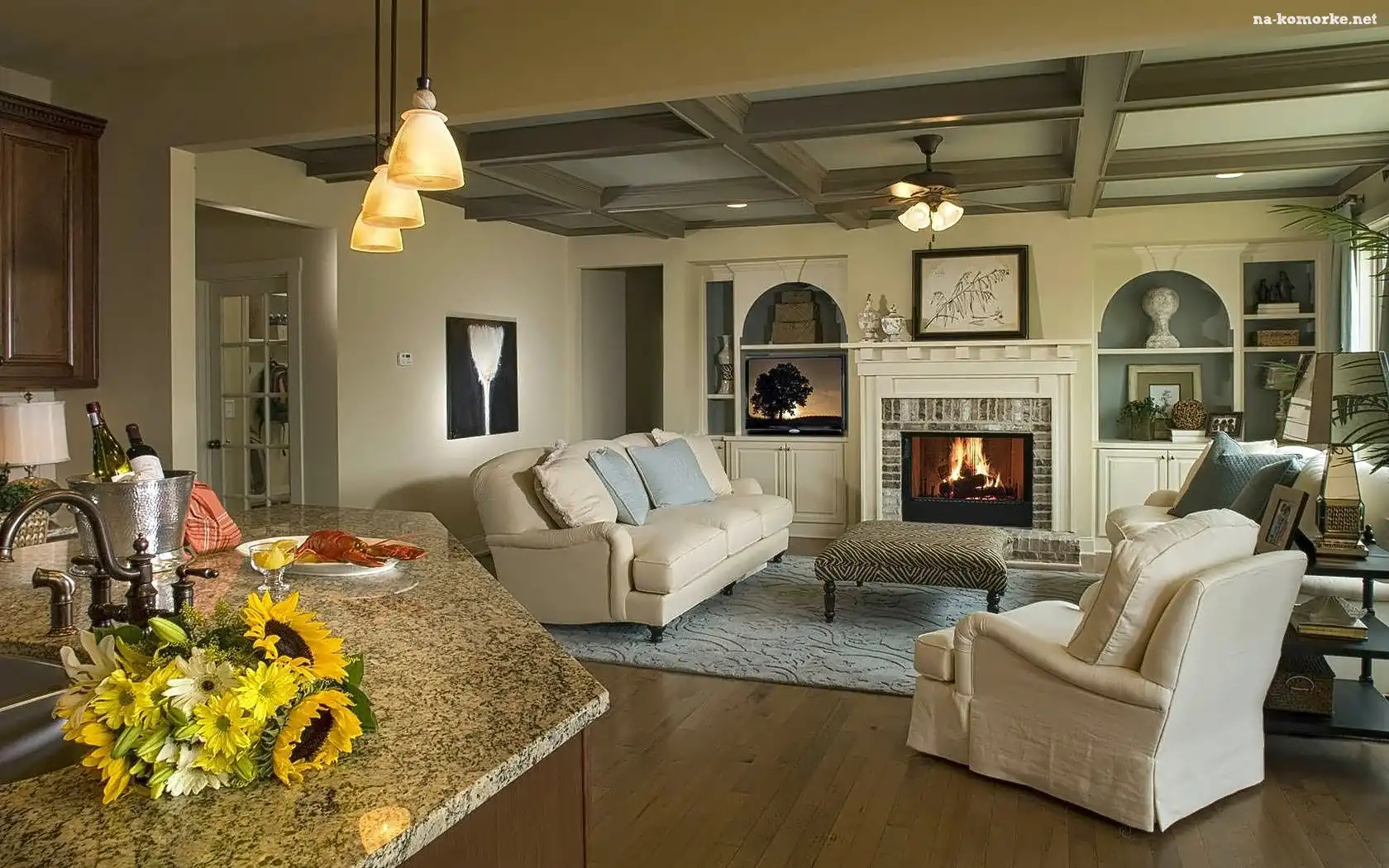 Słoneczniki, Kuchnia, Pokój, Kominek, Kwiaty na Komórkę