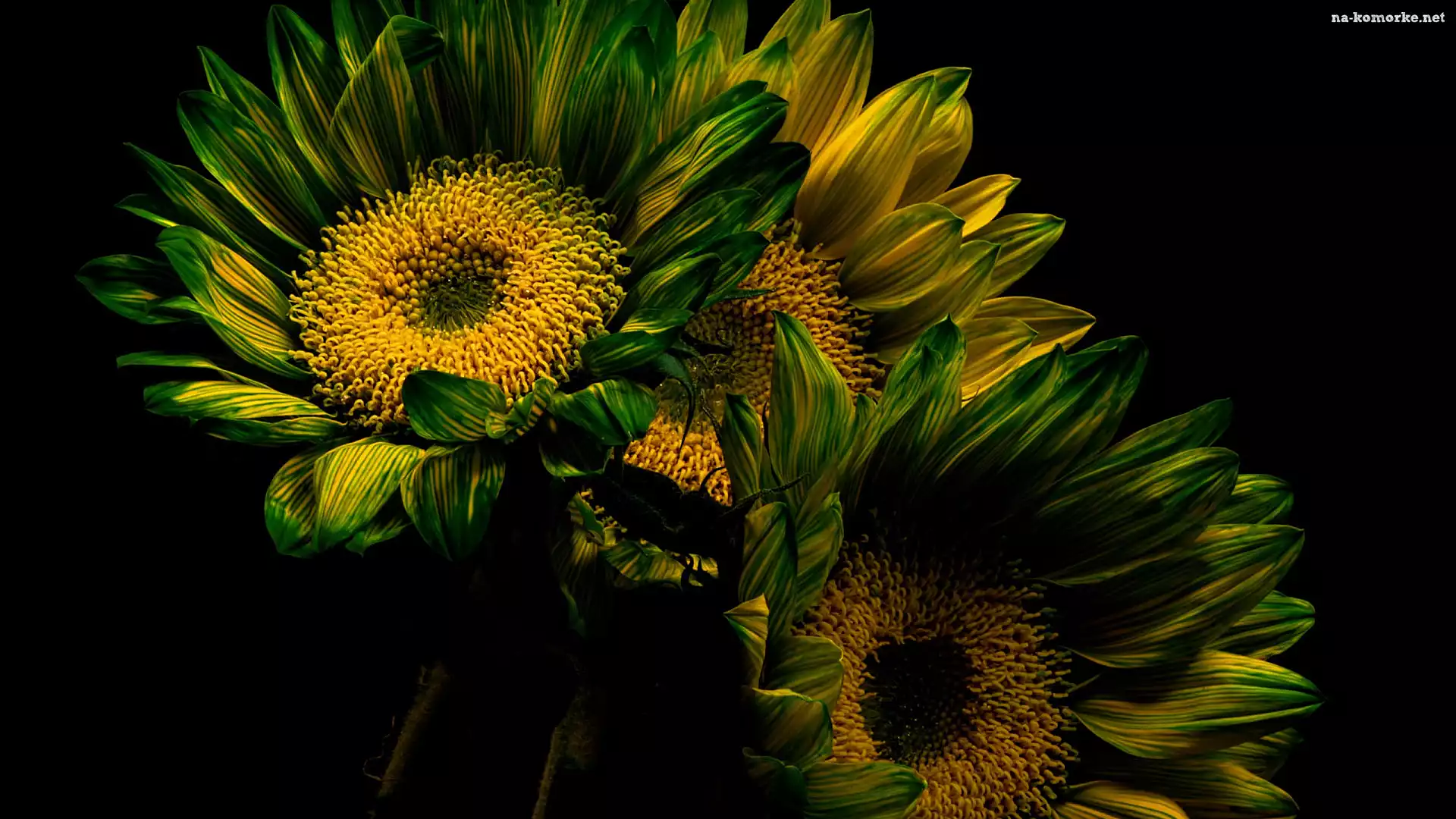 Żółto-zielone, Tło, Słoneczniki, Czarne na Komórkę