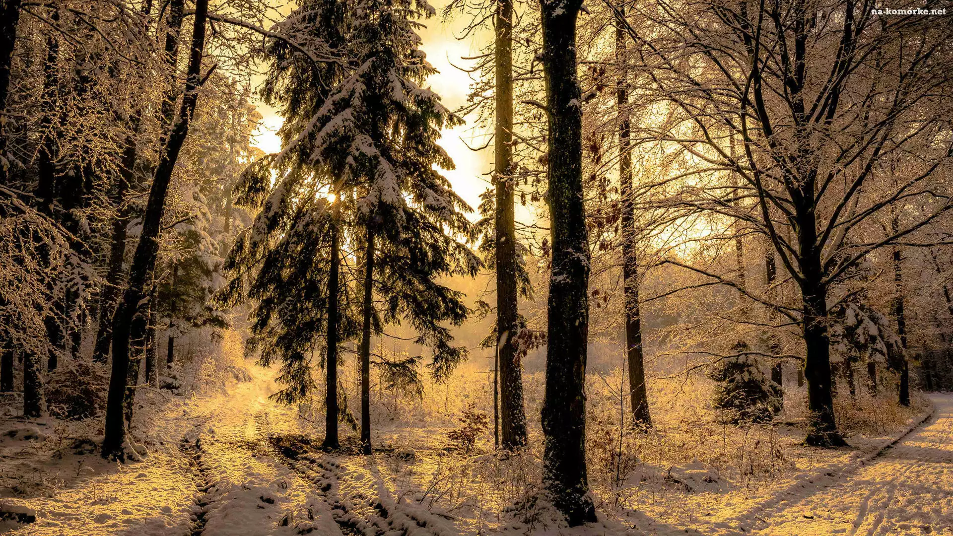 Zima, Słoneczny, Dzień, Las, Drzewa, Droga, Śnieg na Komórkę