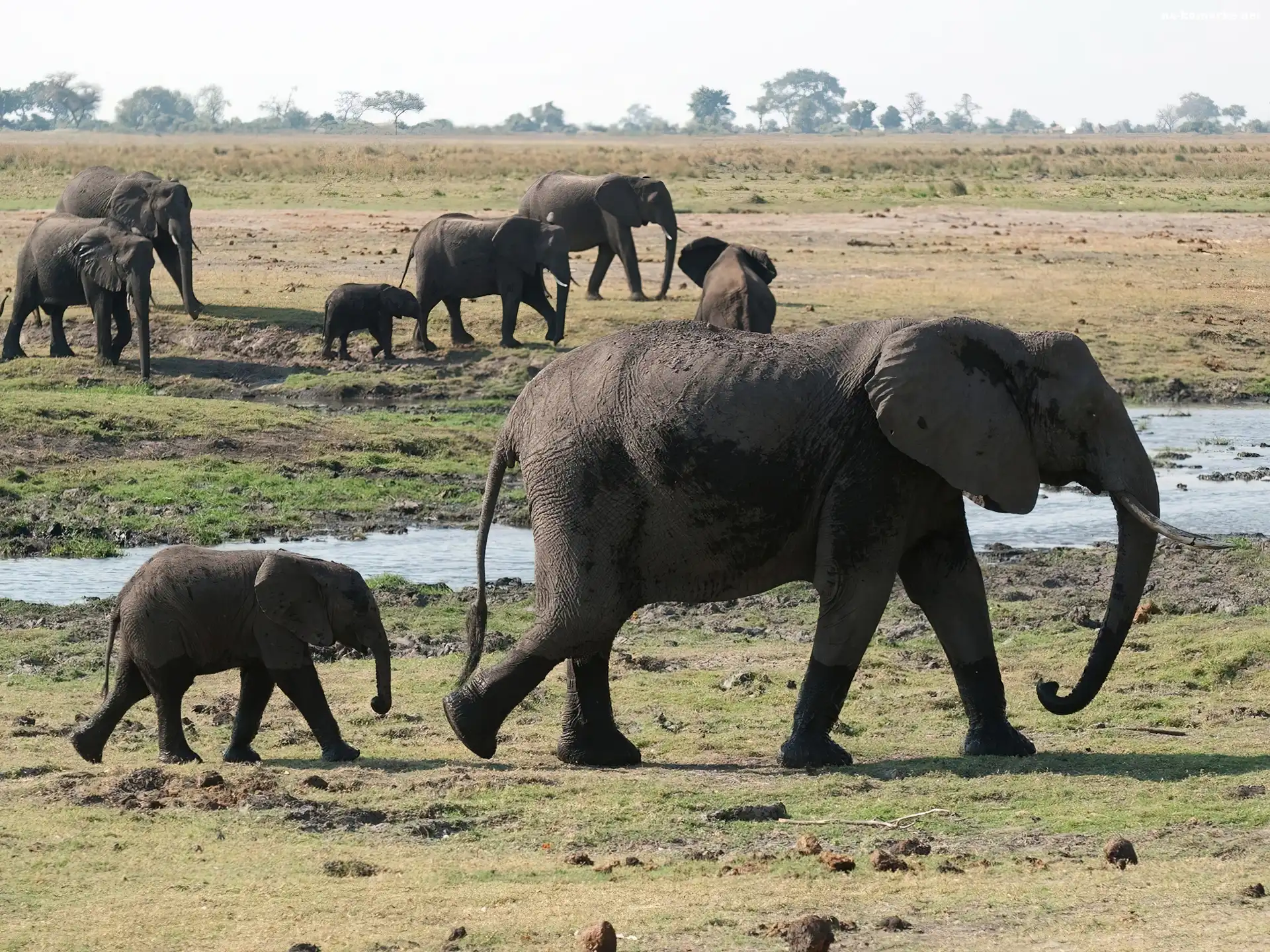 Stado, Słoni, Wodopój na Komórkę