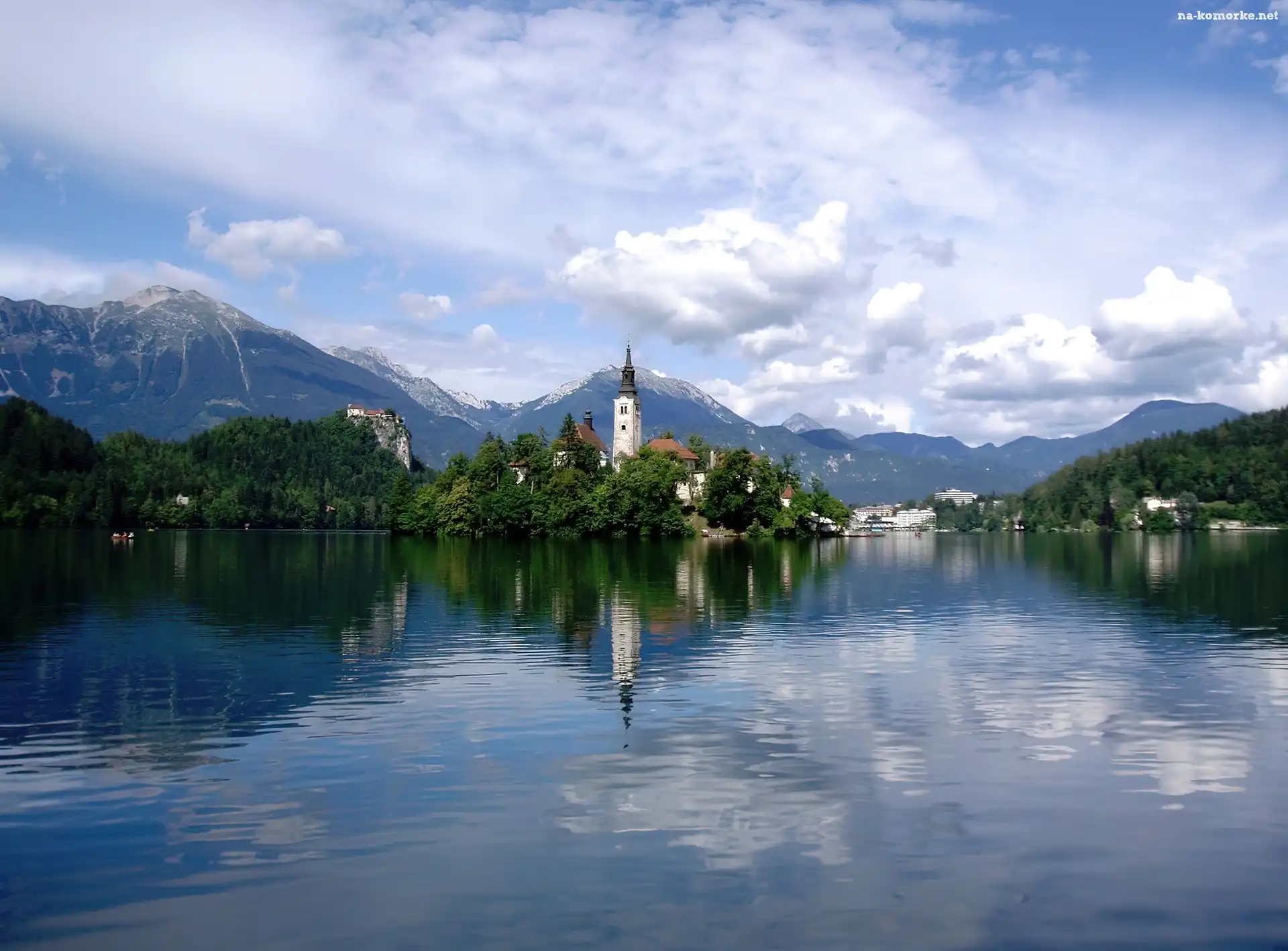 Słowenia, Kóściół, Góry, Jezioro, Bled na Komórkę