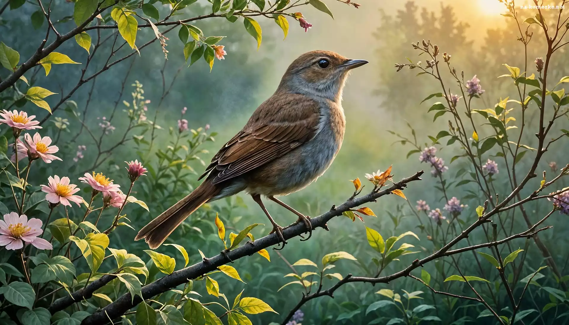 Ptak, Grafika, Gałąź, Słowik rdzawy, Kwiat na Komórkę