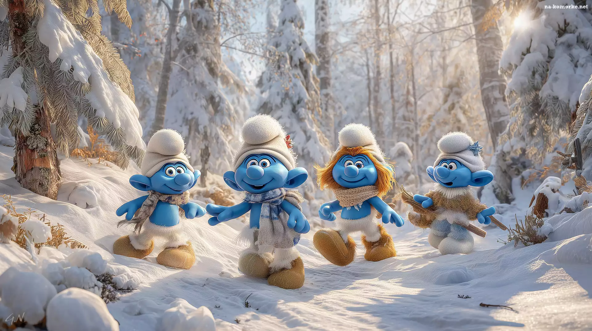 Cztery, Las, Zima, Smerfy, Grafika AI na Komórkę