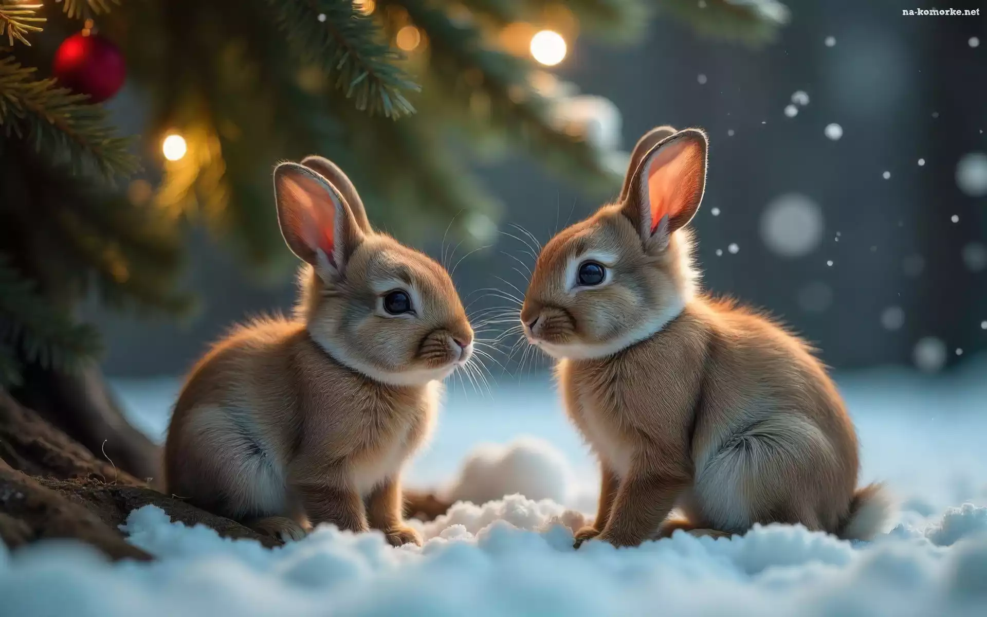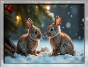 Zima, Dwa, Króliki, Śnieg, Grafika AI na Komórkę
