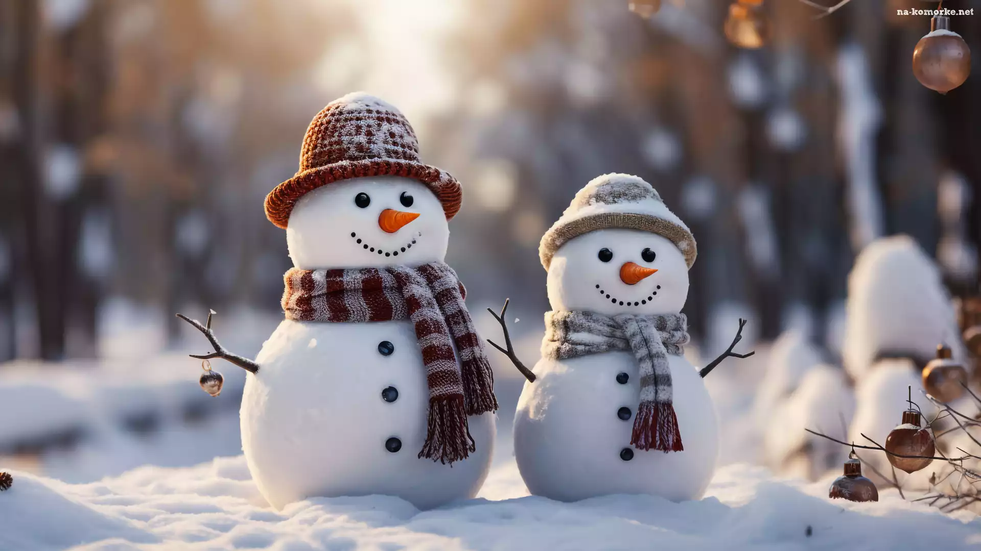Zima, Dwa, Szaliki, Śnieg, Czapki, Bałwanki na Komórkę