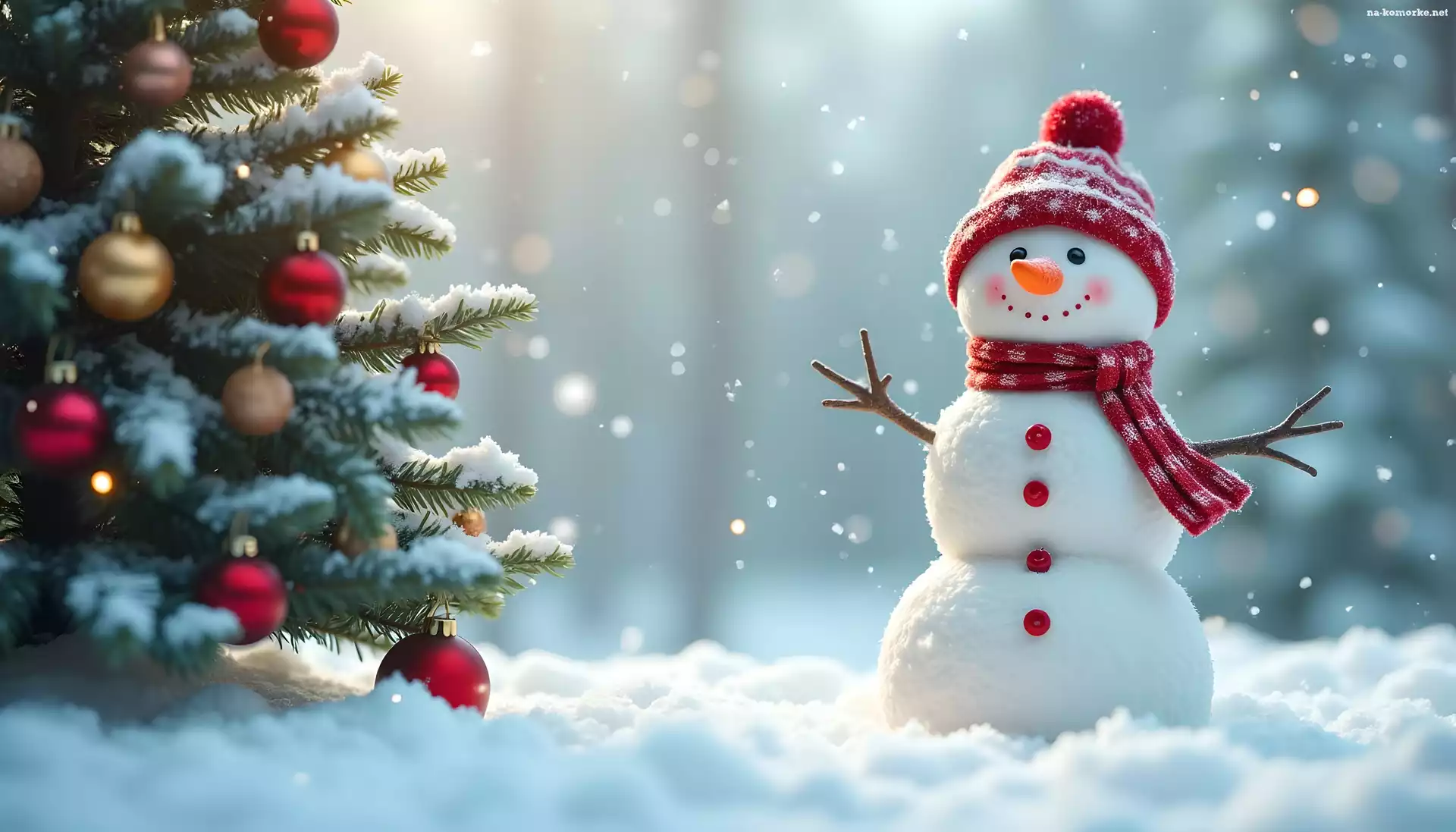 Choinka, Grafika, Bałwan, Śnieg na Komórkę
