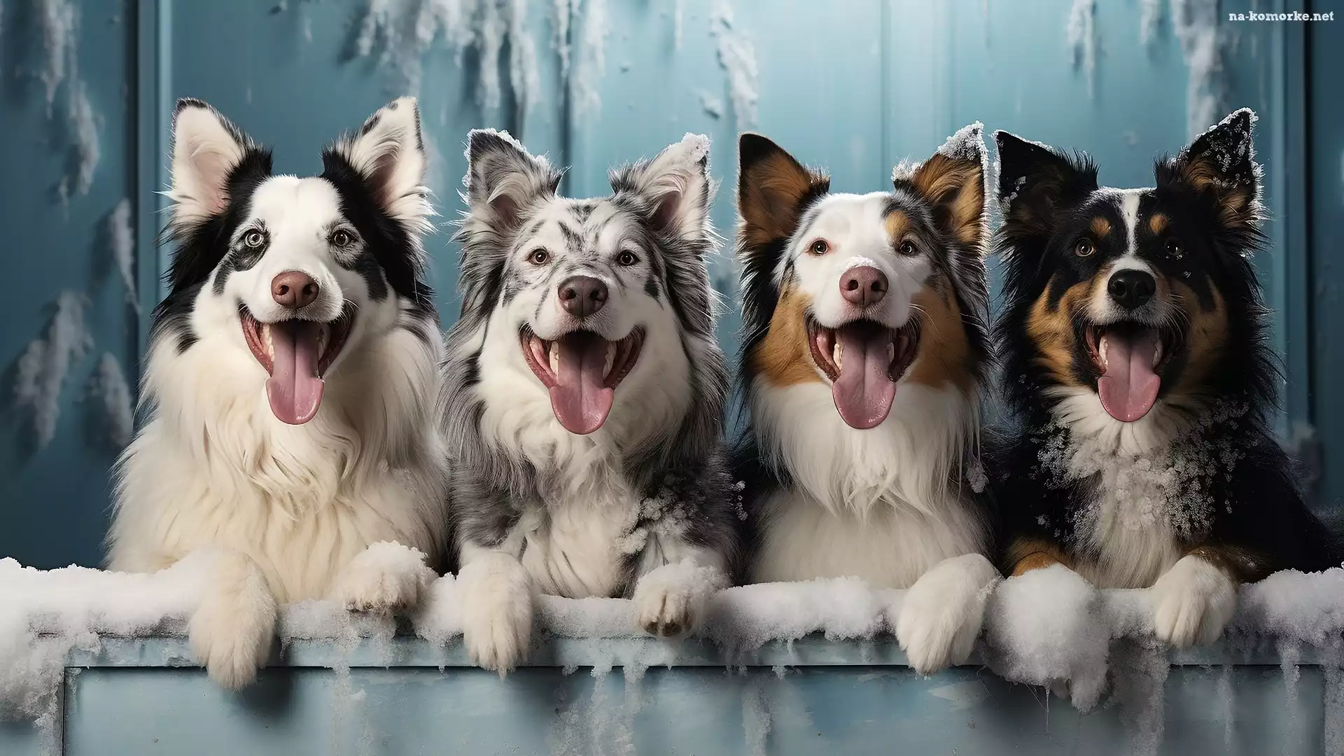 Zmarznięty, Cztery, Jęzory, Śnieg, Border collie, Psy na Komórkę