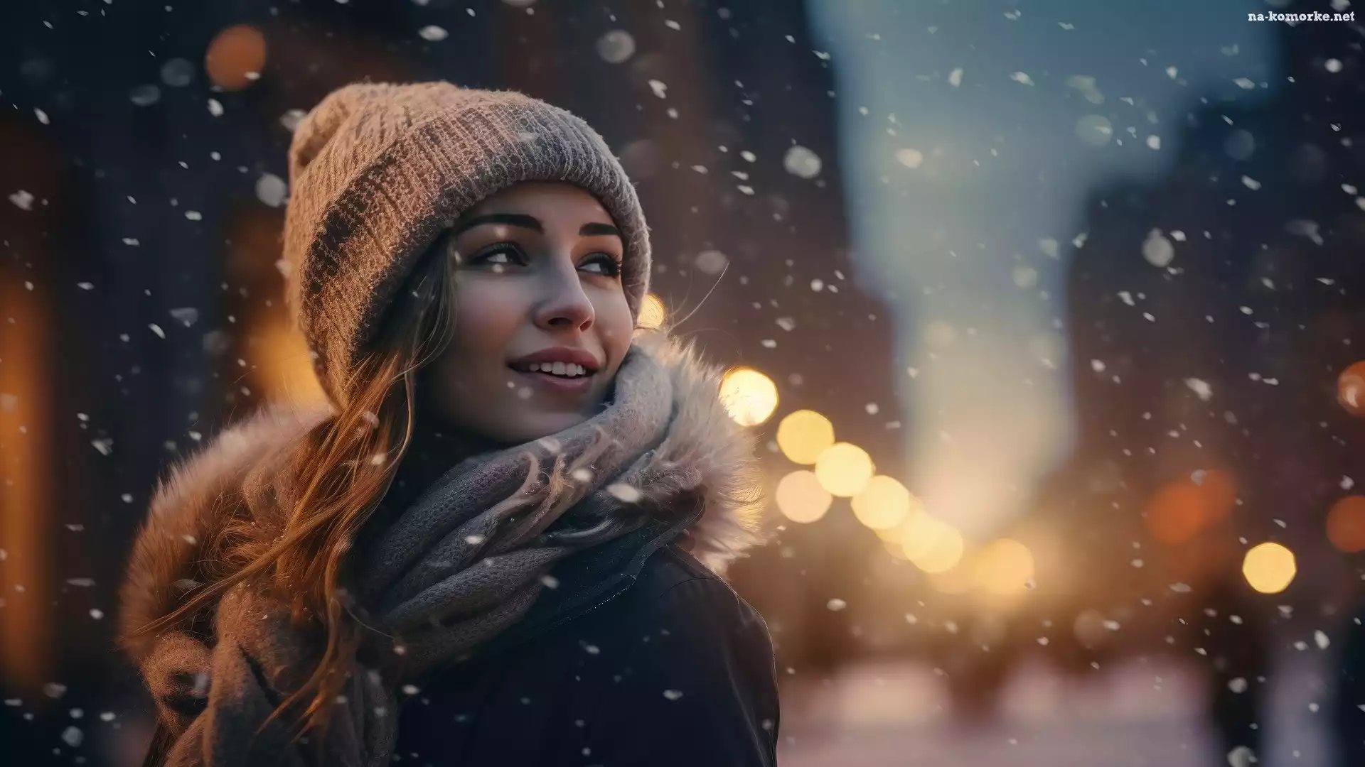 Padający, Zima, Szal, Śnieg, Czapka, Kobieta na Komórkę