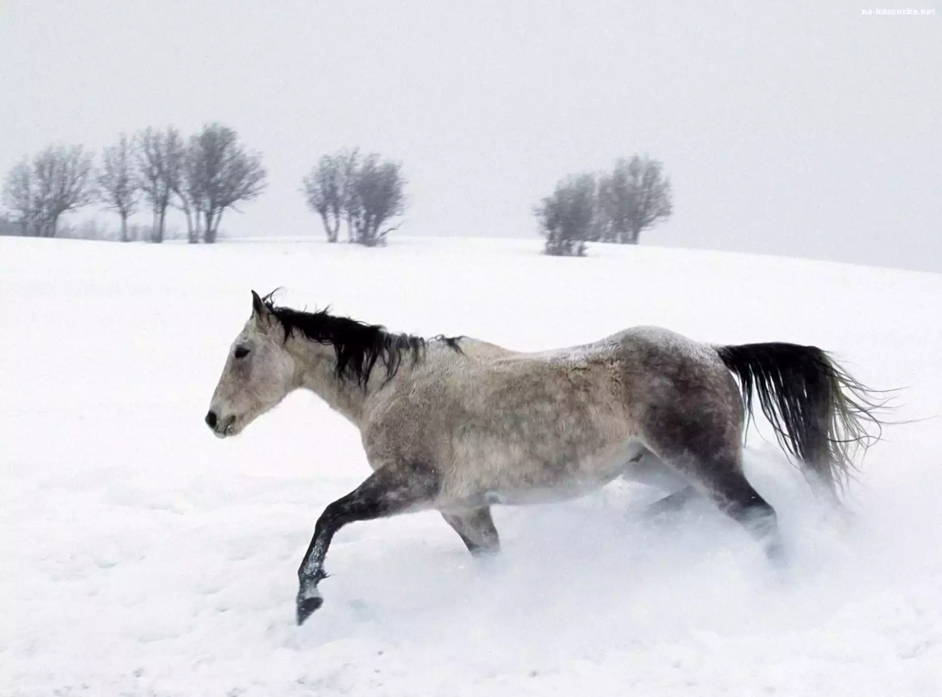 Koń, śnieg, drzewa na Komórkę