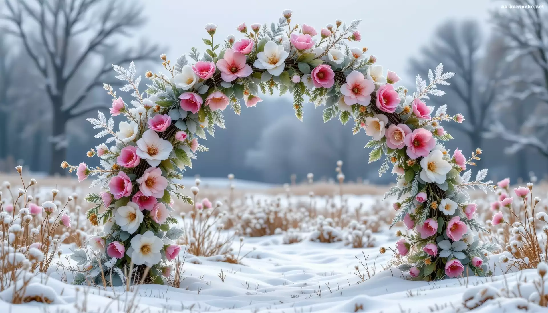 Drzewa, Zima, Roślinność, Śnieg, Kwiaty, Łuk na Komórkę