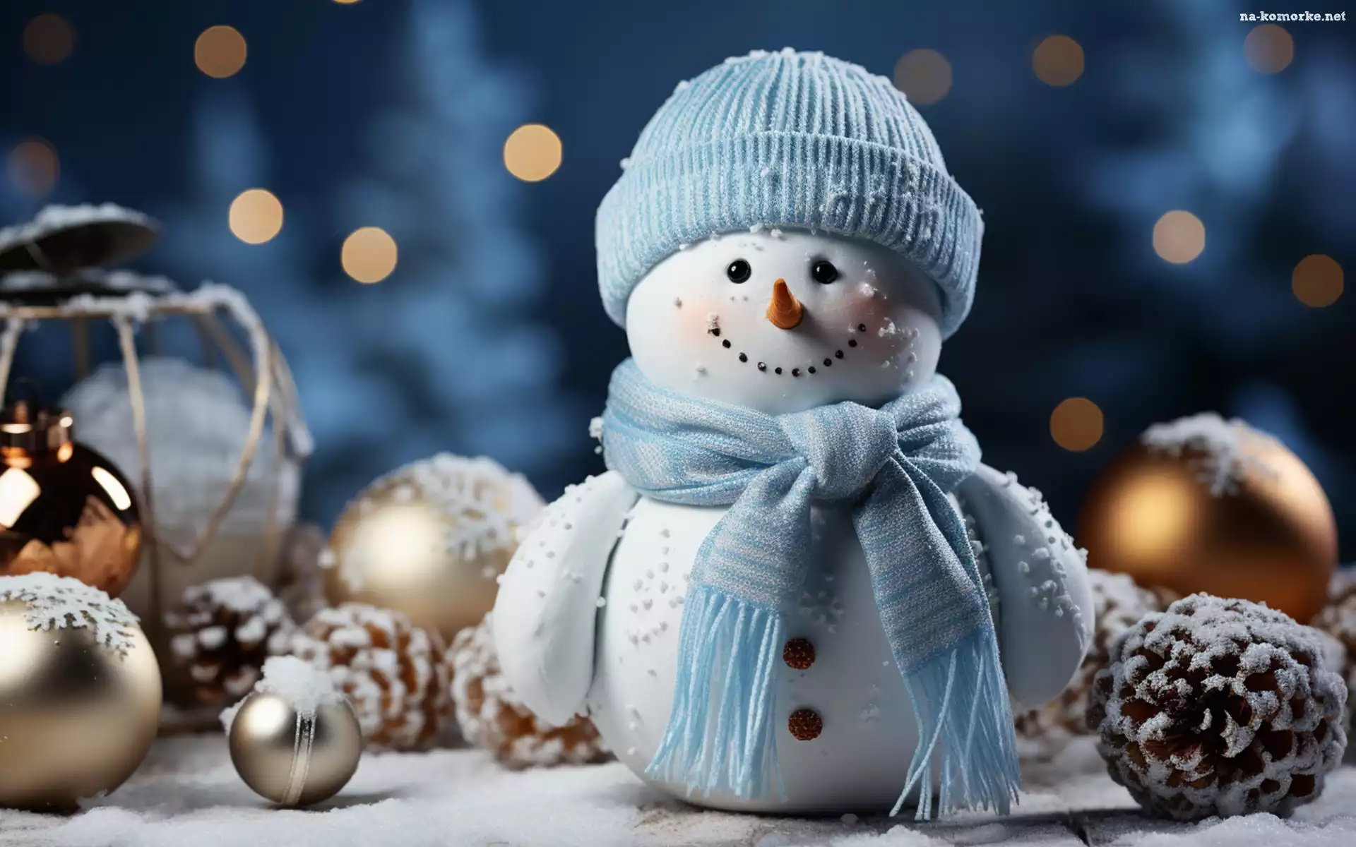 Bałwanek, Bombki, Szalik, Zima, Szyszki, Dekoracja, Czapka, Śnieg na Komórkę