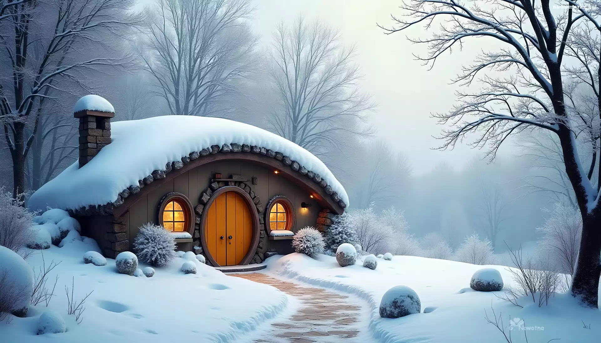 Domek, Śnieg, Zima, Hobbit, Grafika na Komórkę