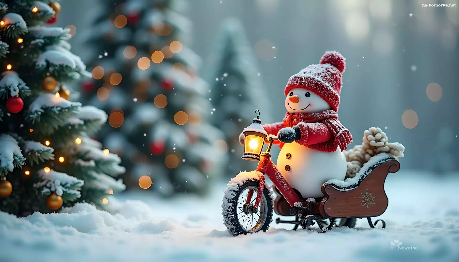 Bałwan, Śnieg, Zima, Rower, Grafika na Komórkę