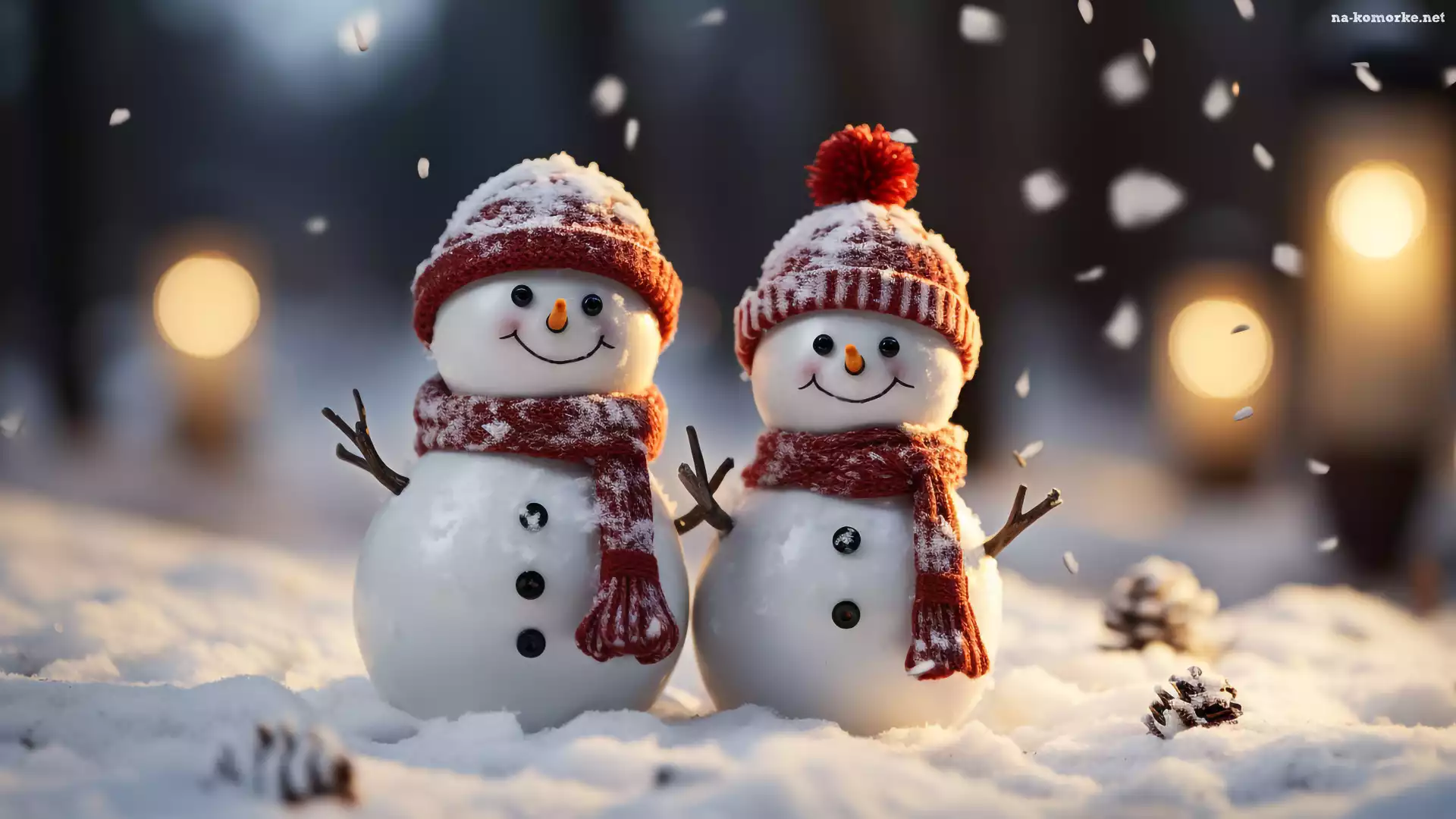 Czapki, Szaliki, Zima, Śnieg, Bałwanki, Czerwone, Dwa na Komórkę