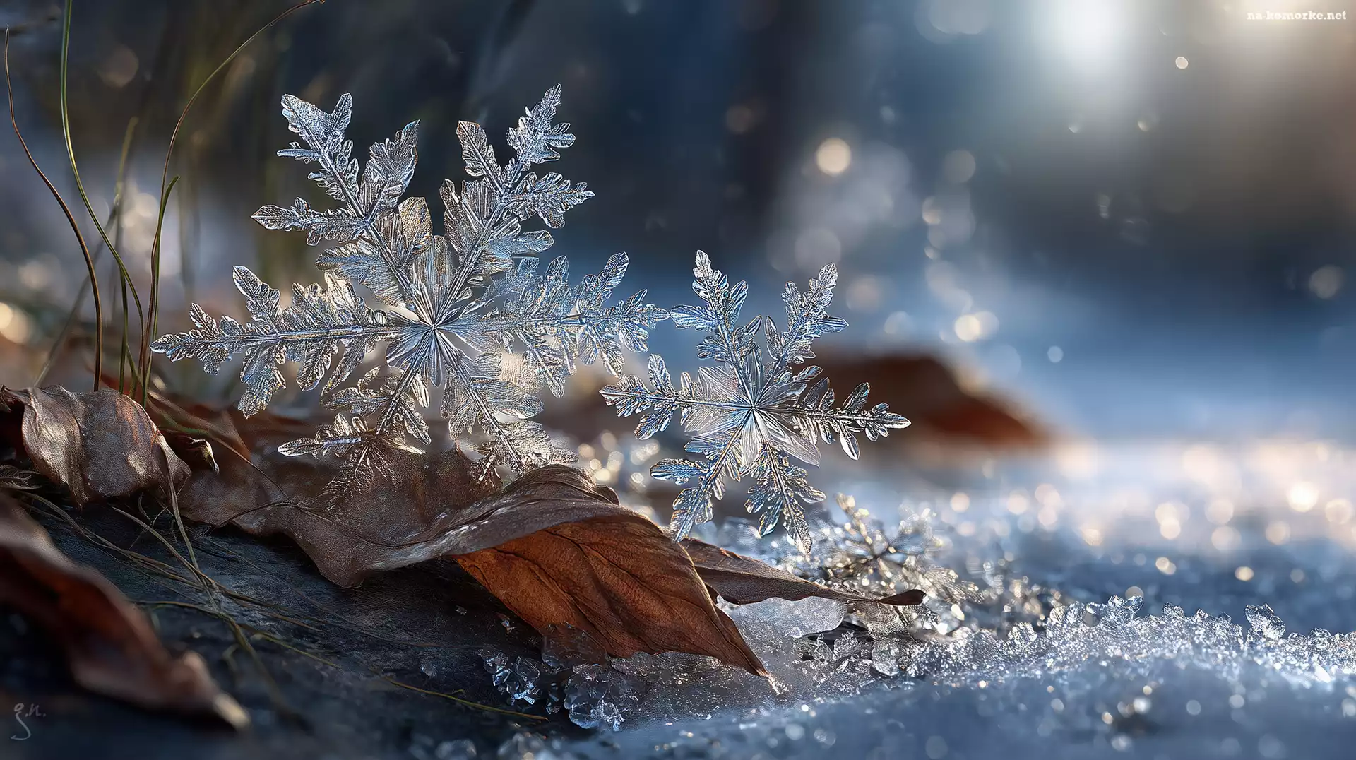 Dwie, Zima, Śnieg, Śnieżynki, Grafika AI na Komórkę
