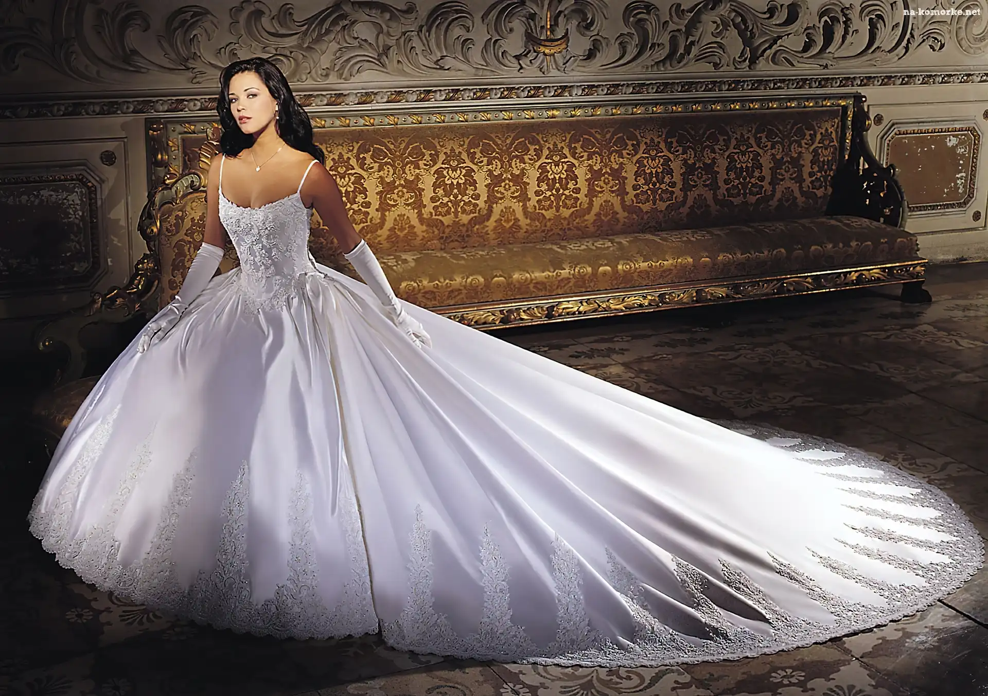 Sofa, Kobieta, Biała, Suknie, Rękawiczki na Komórkę