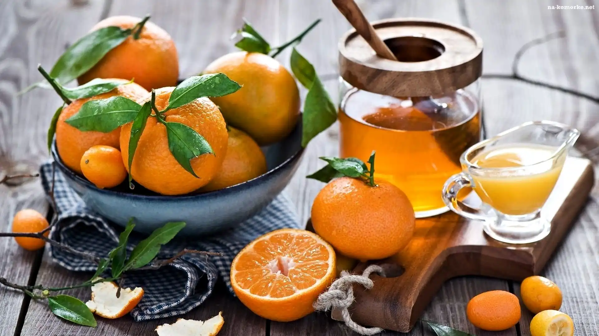 Cytrusy, Sok, Deska, Mandarynki, Kumkwaty, Miód, Słoik na Komórkę