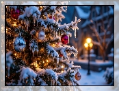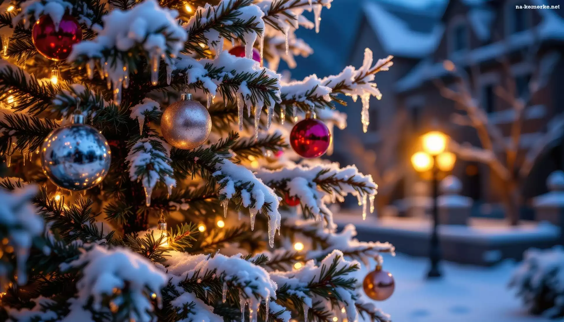 Boże Narodzenie, Śnieg, Sople, Choinka, Grafika AI na Komórkę
