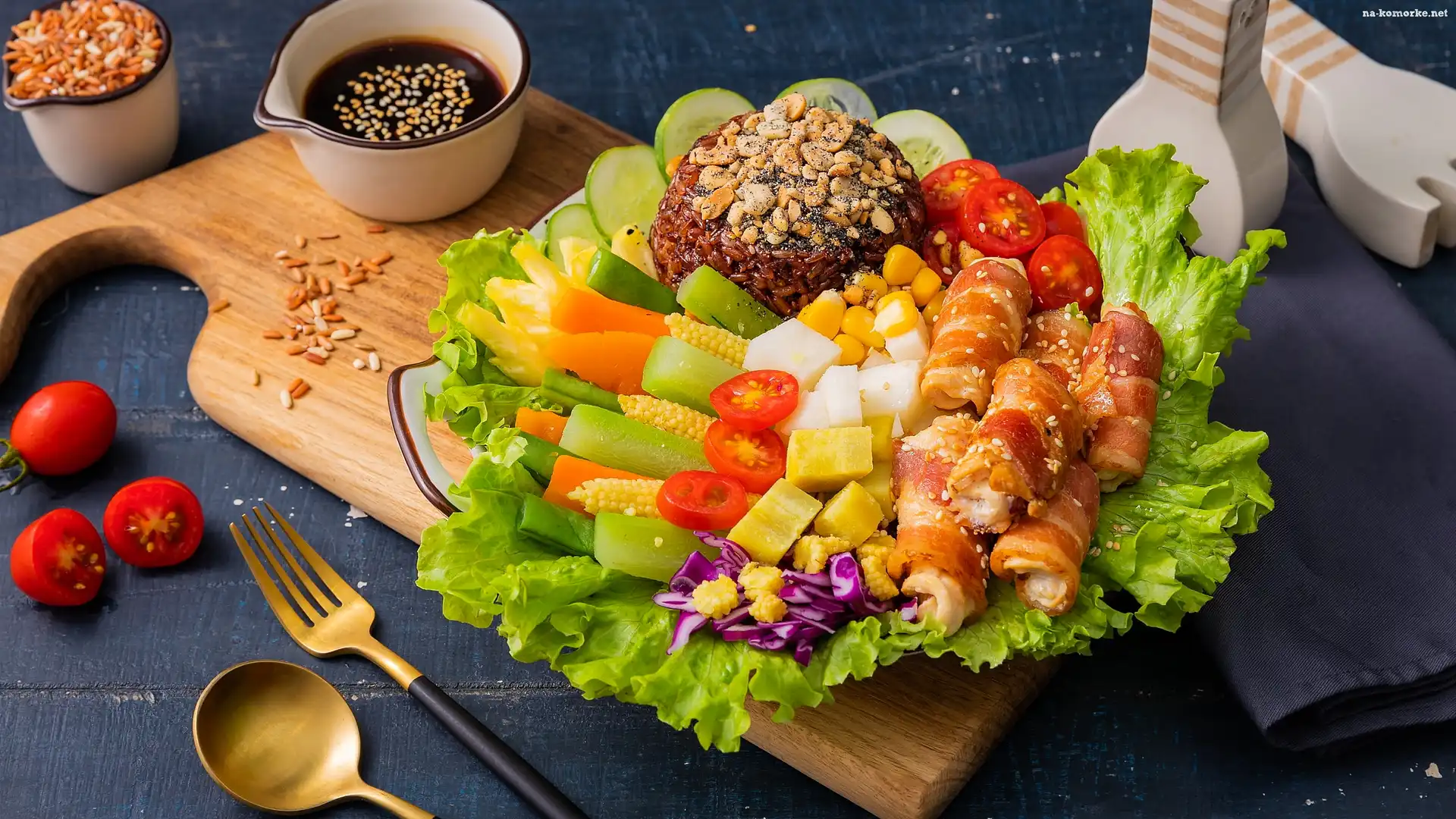Sos, Mięso, Ryż, Warzywa, Deska na Komórkę